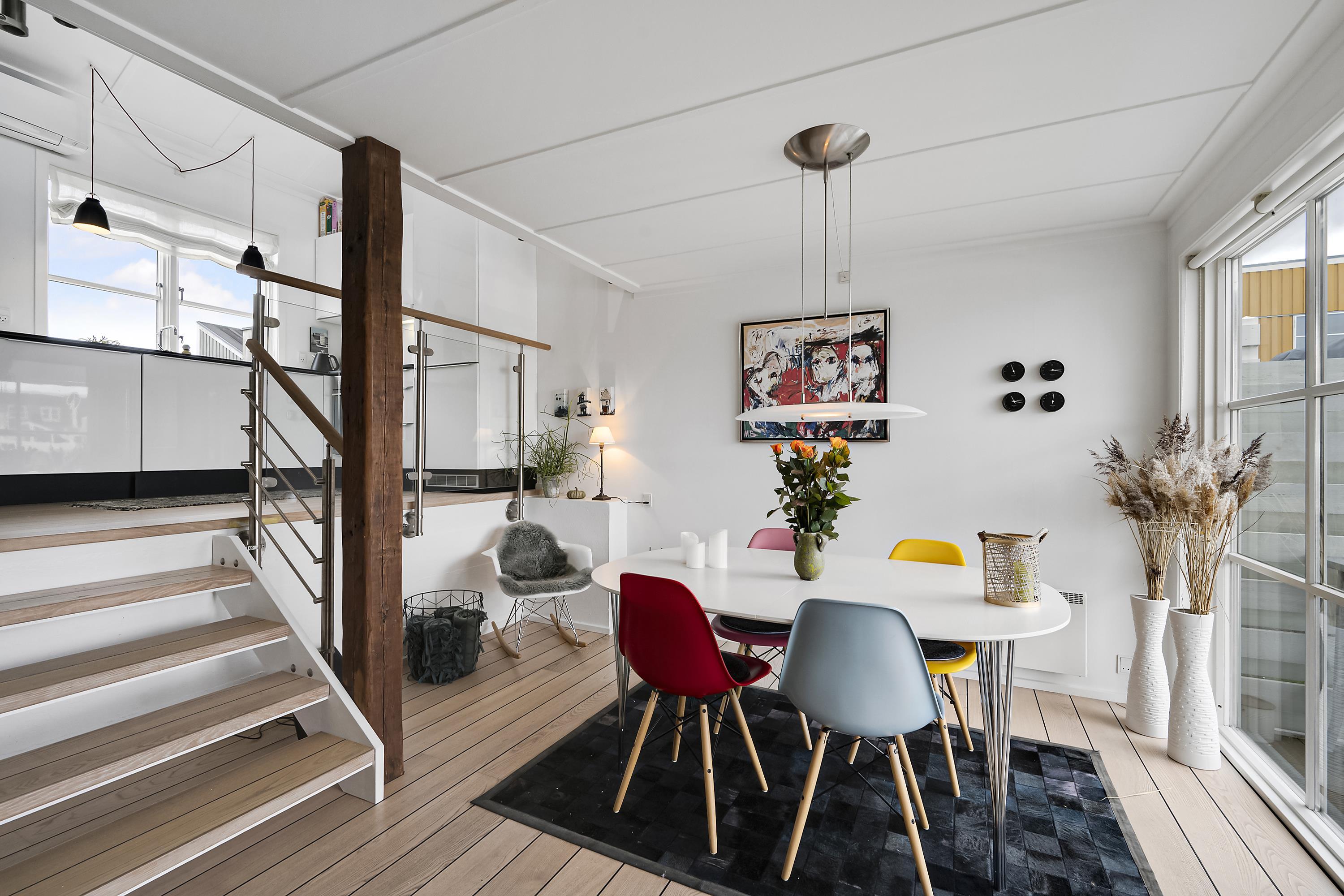 I Øer Maritime Ferieby finder man dette utrolig flotte og velindrettede hus. I stueplan finder man det skønne køkken med b.la. opvaskemaskine og flot badeværelse. Nedgang til forsænket spisestue, og hvorfra der er udgang til en skøn terrasse med havemøbler. I underetagen finder man også det ene af husets soveværelser med dobbeltseng. Opgang til første sal, hvor man finder en rigtig dejlig stue, hyggelig og smagsfuld møbleret med gode møbler og hvorfra der er udgang til endnu en lille terrasse. Her finder man også huset andet soveværelse med dobbeltseng. Ved indgangen til huset er der endnu en terrasse med havemøbler, så man har altid mulighed for at nyde både solopgang og solnedgang. Et virkelig flot og gennemført hus.