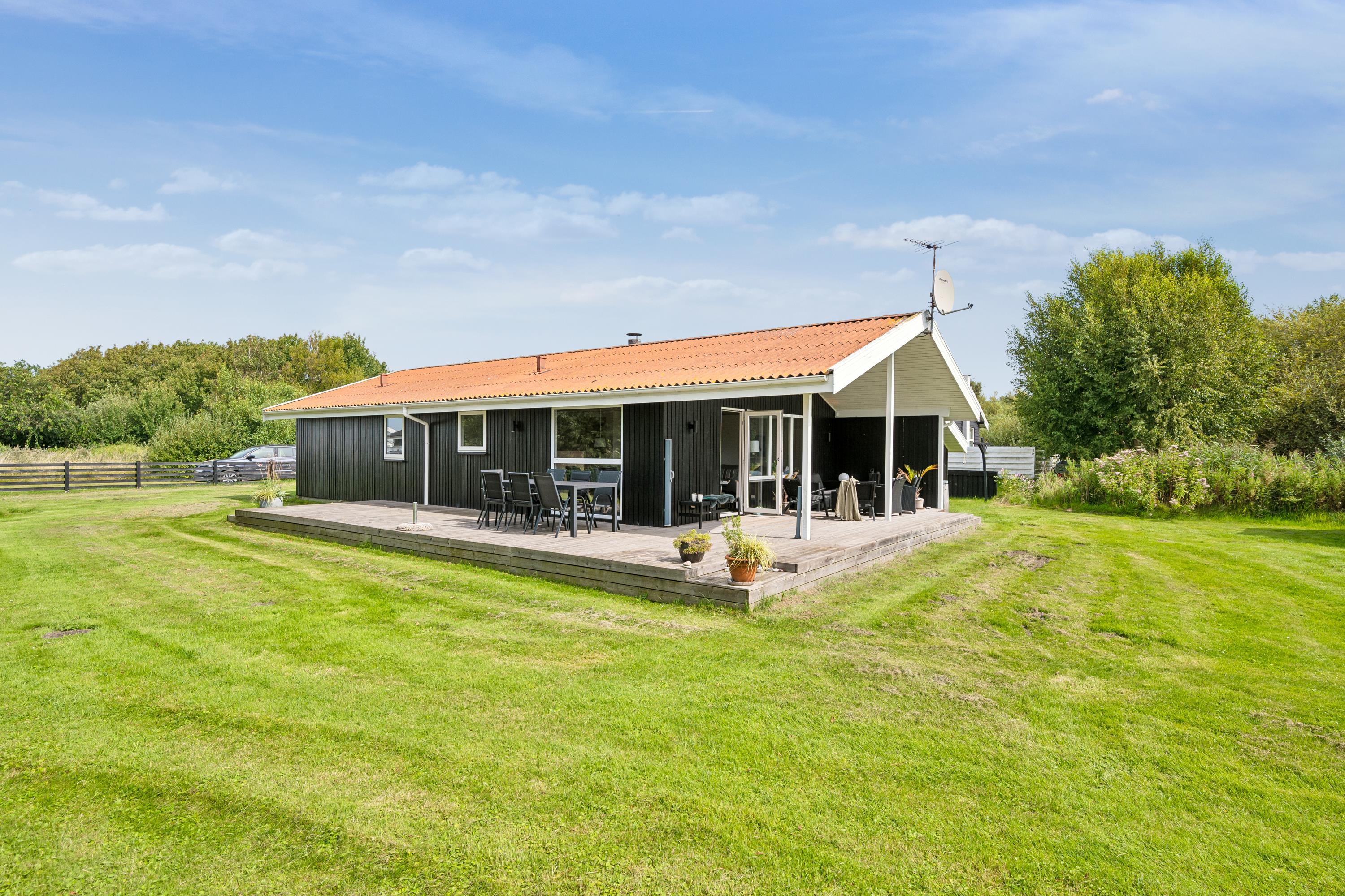 Velholdt og veludstyret feriehus beliggende i det smukke landskab ved Øer og bare 150 meter fra den børnevenlige Øer Strand. Stor, dejlig, delvist overdækket syd- og vestvendt træterrasse med havemøbler, liggestole, parasol og grill.