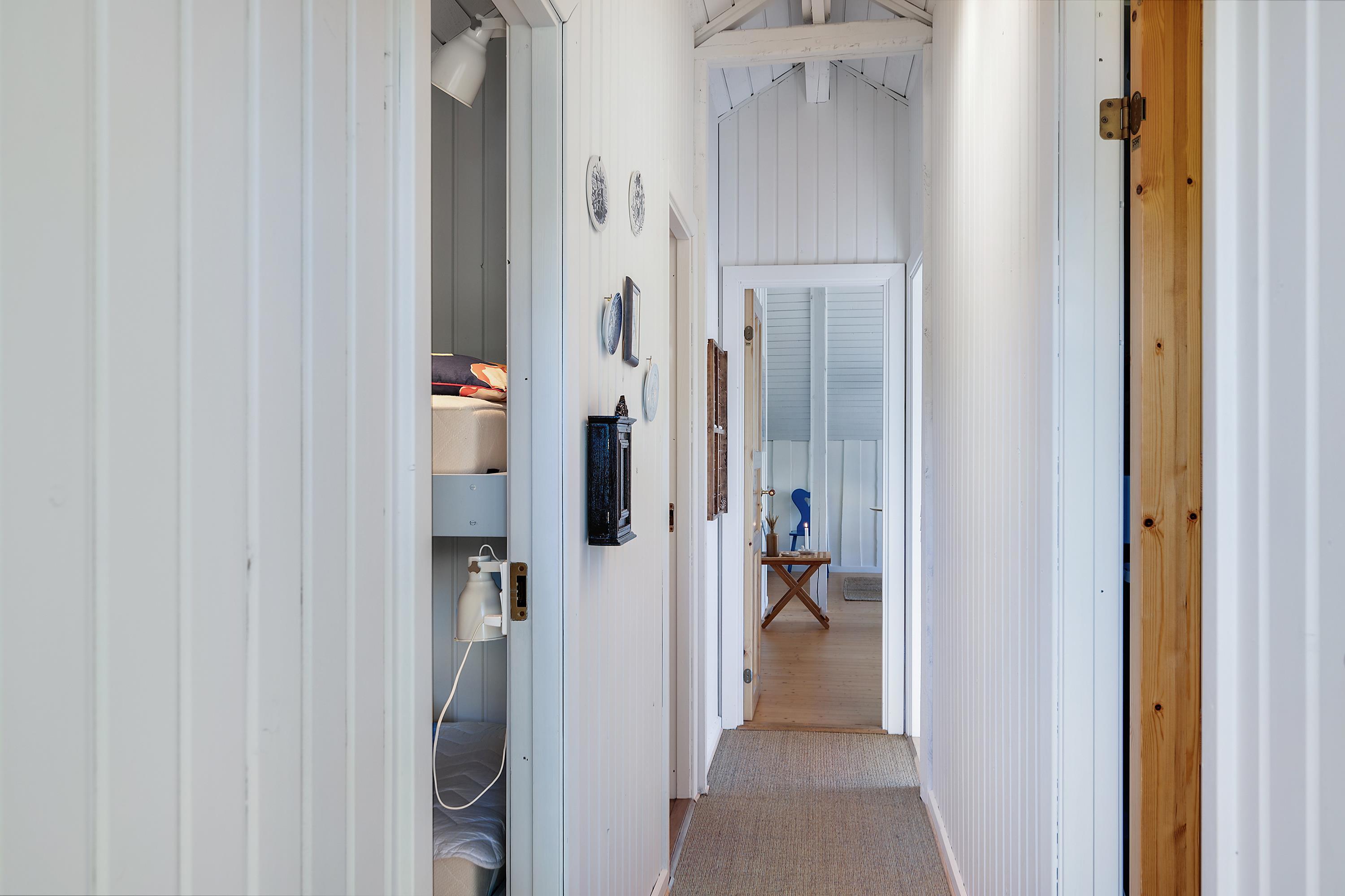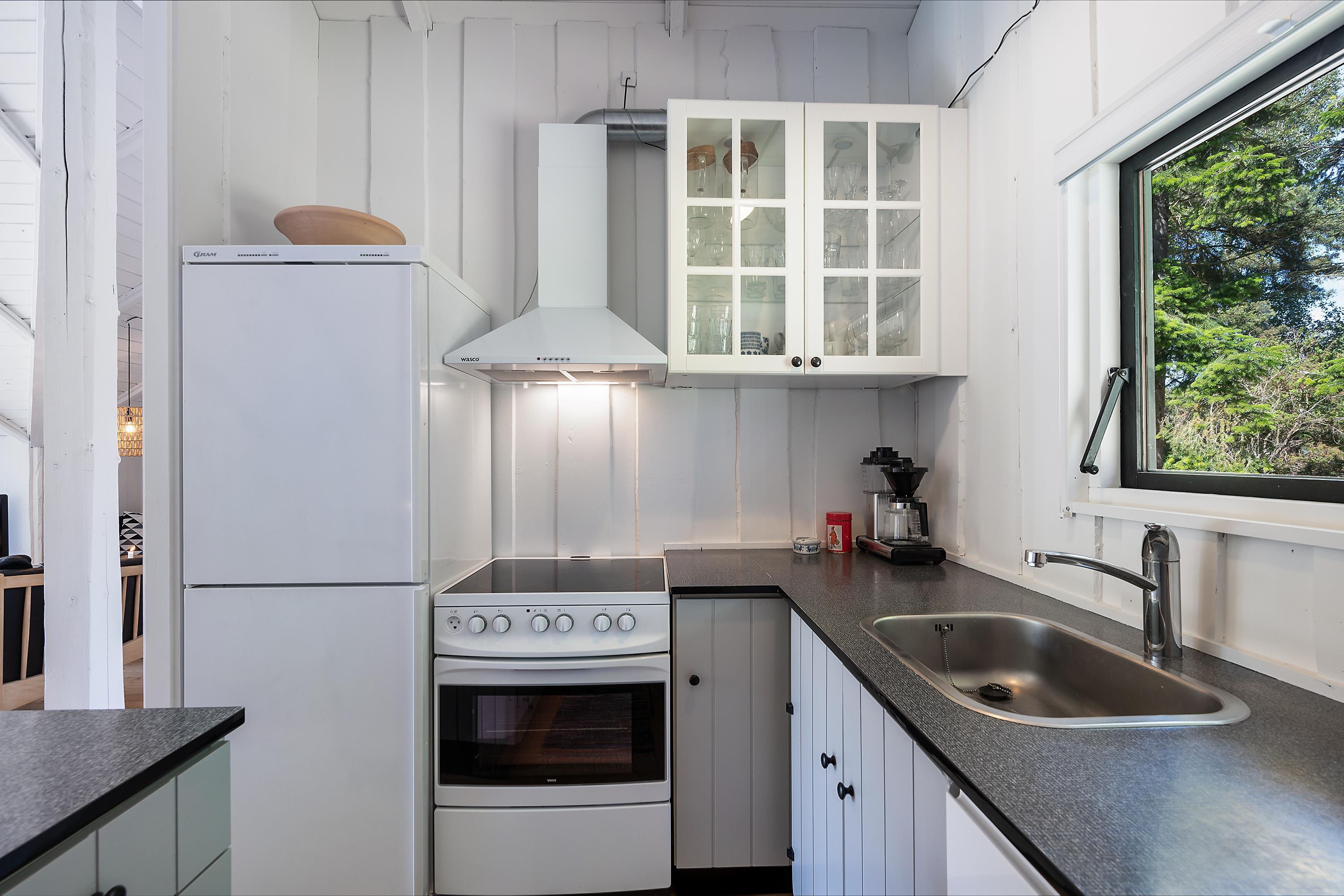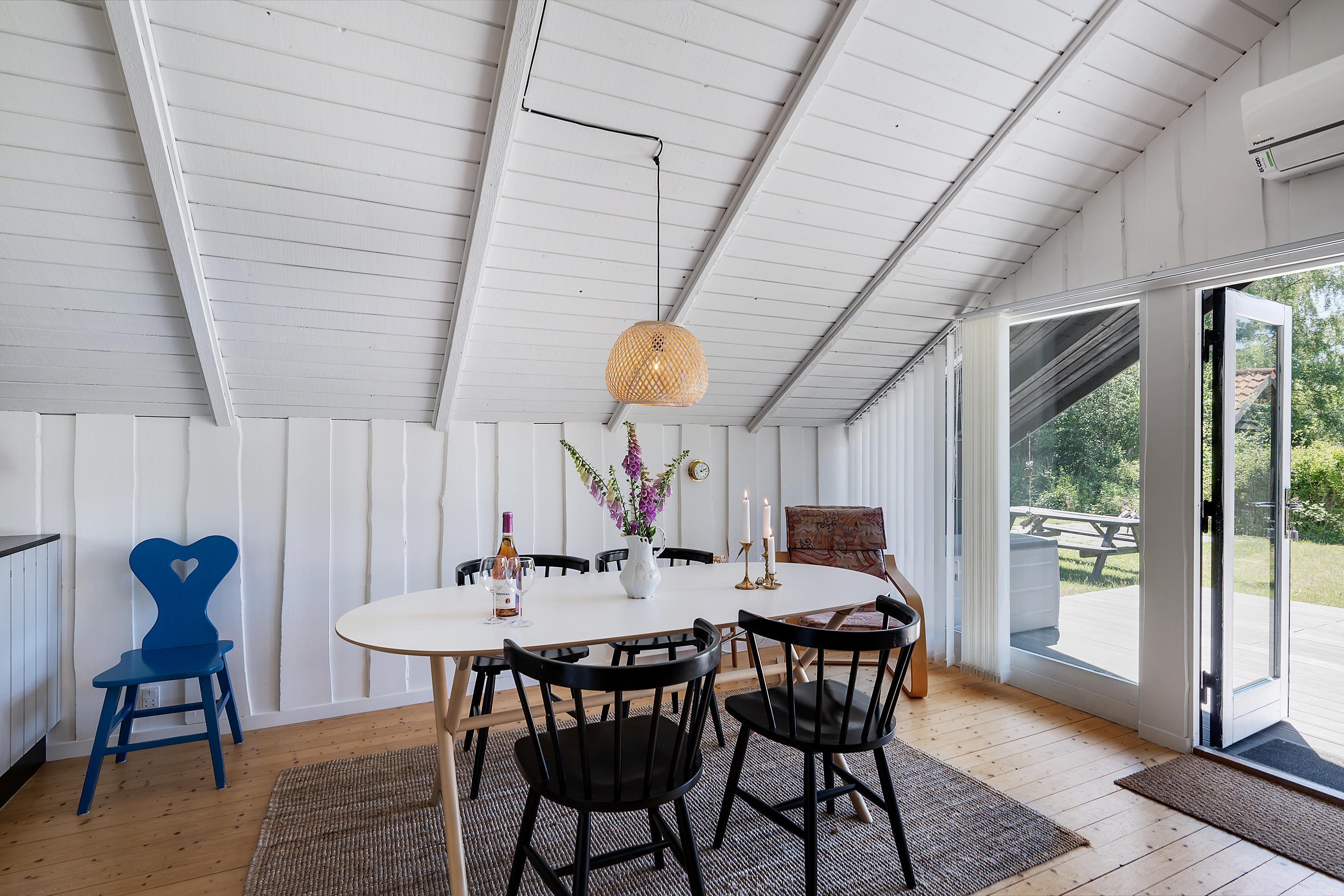 Allerede når man åbner døren og træder ind i entreen, fornemmer man den ægte sommerhusstemning der er i dette hus. Her finder man en velindrettet og rigtig hyggelig stue med gode møbler og b.la varmepumpe. Fra stuen er der udgang til en dejlig overdækket terrasse, hvor man i fred og ro kan sidde og spise og samtidig følge med i det rige dyreliv, der er i området. I forbindelse med spiseafdelingen, finder man det mindre men funktionelle køkken med B.la. opvaskemaskine. Husets sovepladser finder man i de tre hyggelige soveværelser; heraf et værelse med en dobbeltseng, samt to værelser med køjesenge. Pænt og lyst badeværelse med bruseniche. Der er internet i huset
