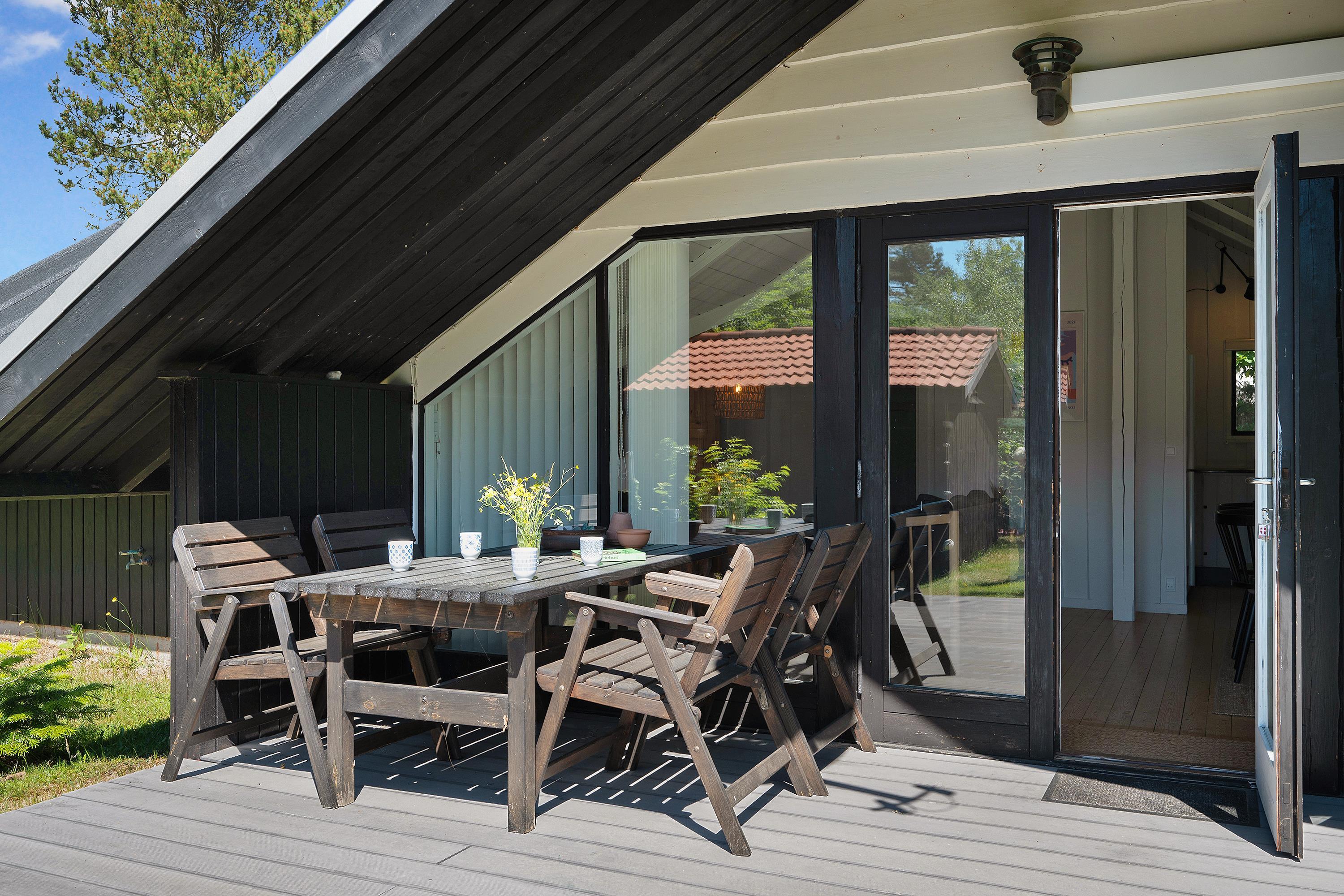 Hyggeligt sommerhus i Ebeltoft med overdækket terrasse, internet og nær strand, perfekt til en aktiv ferie med familie og venner.