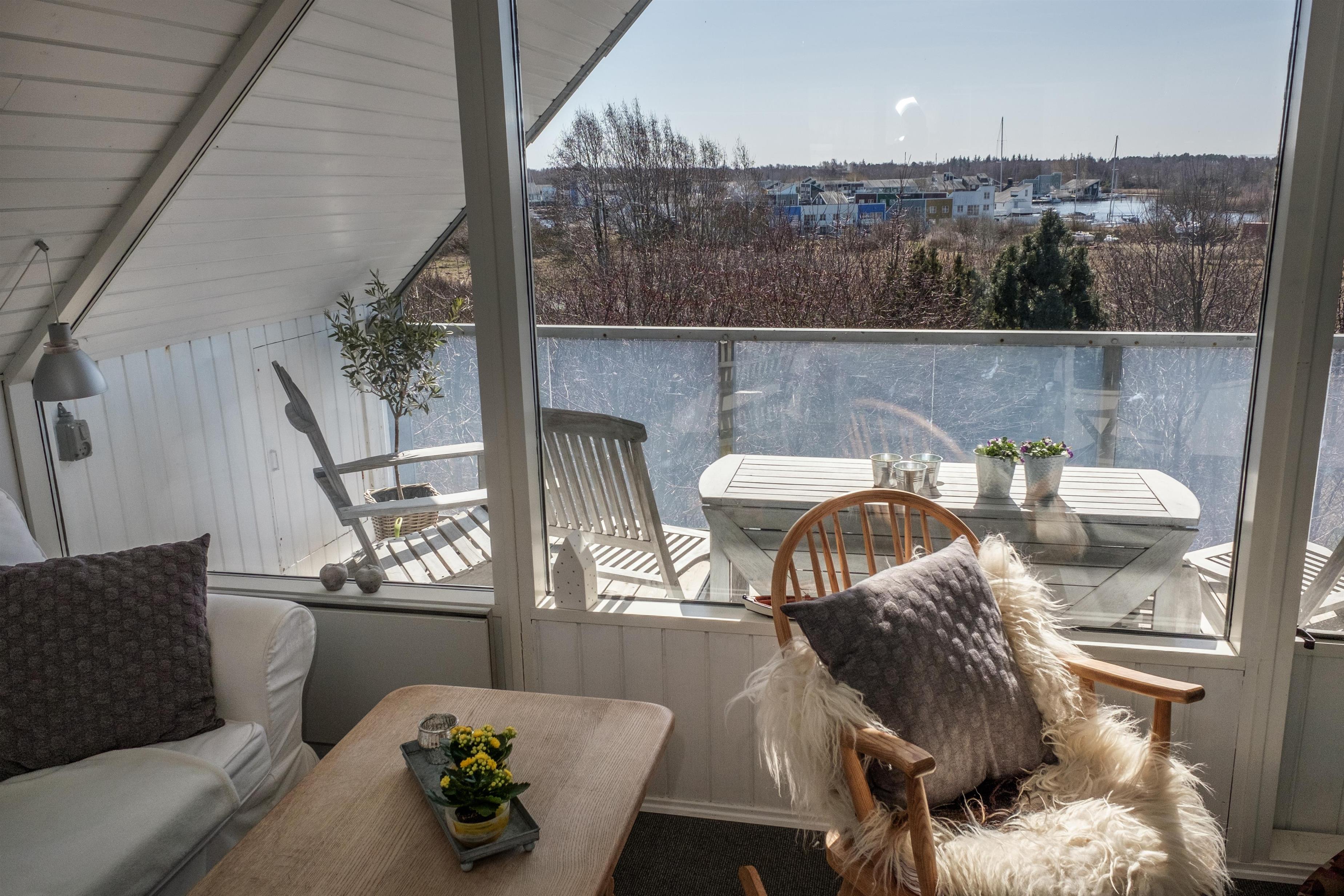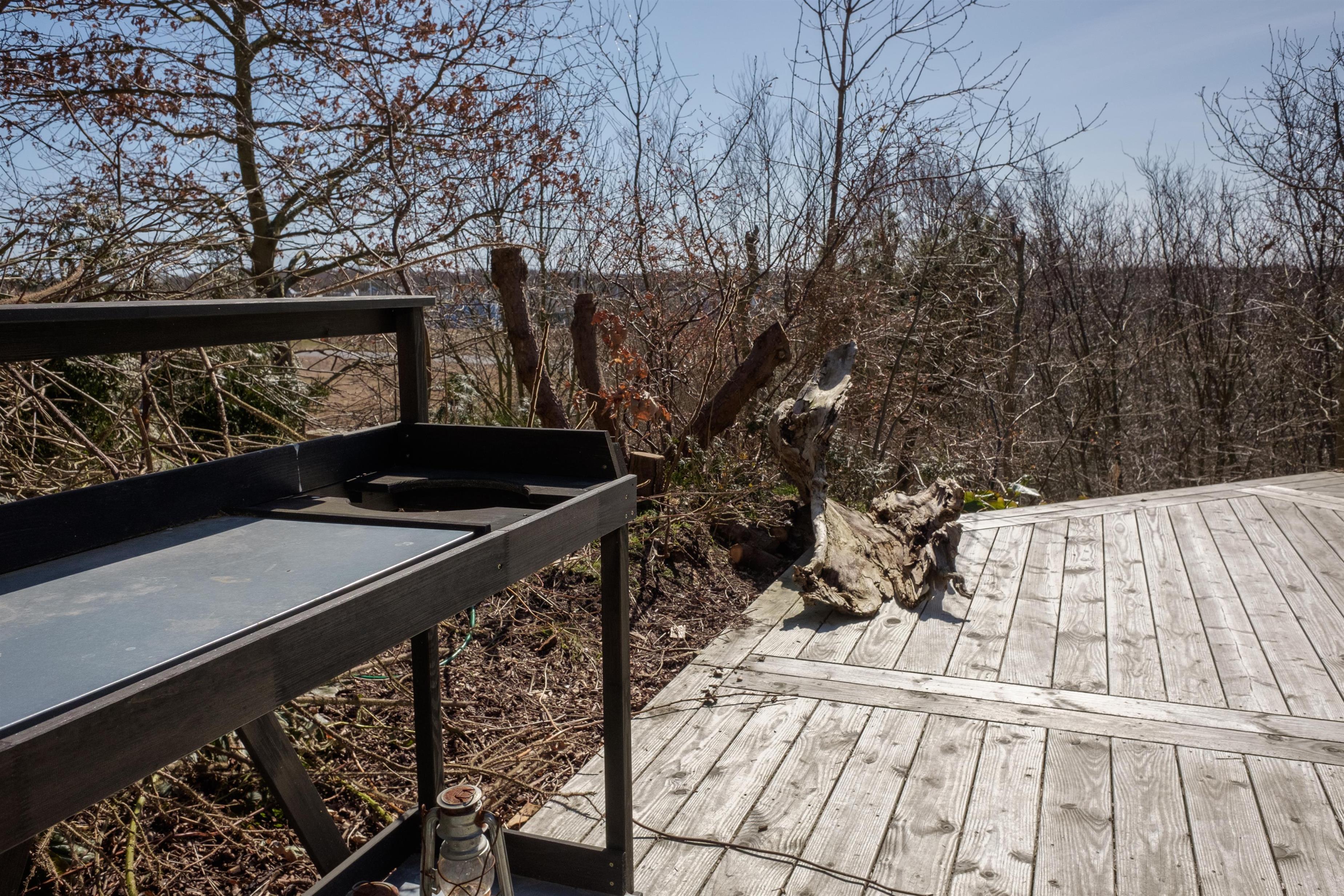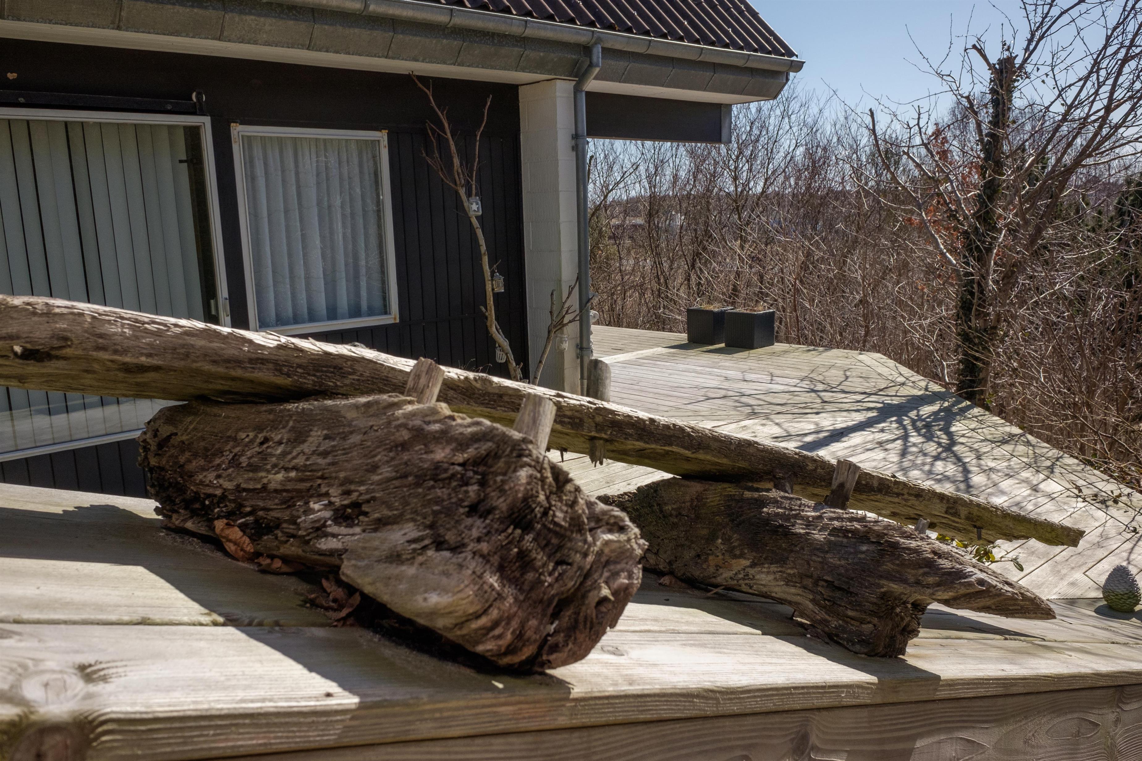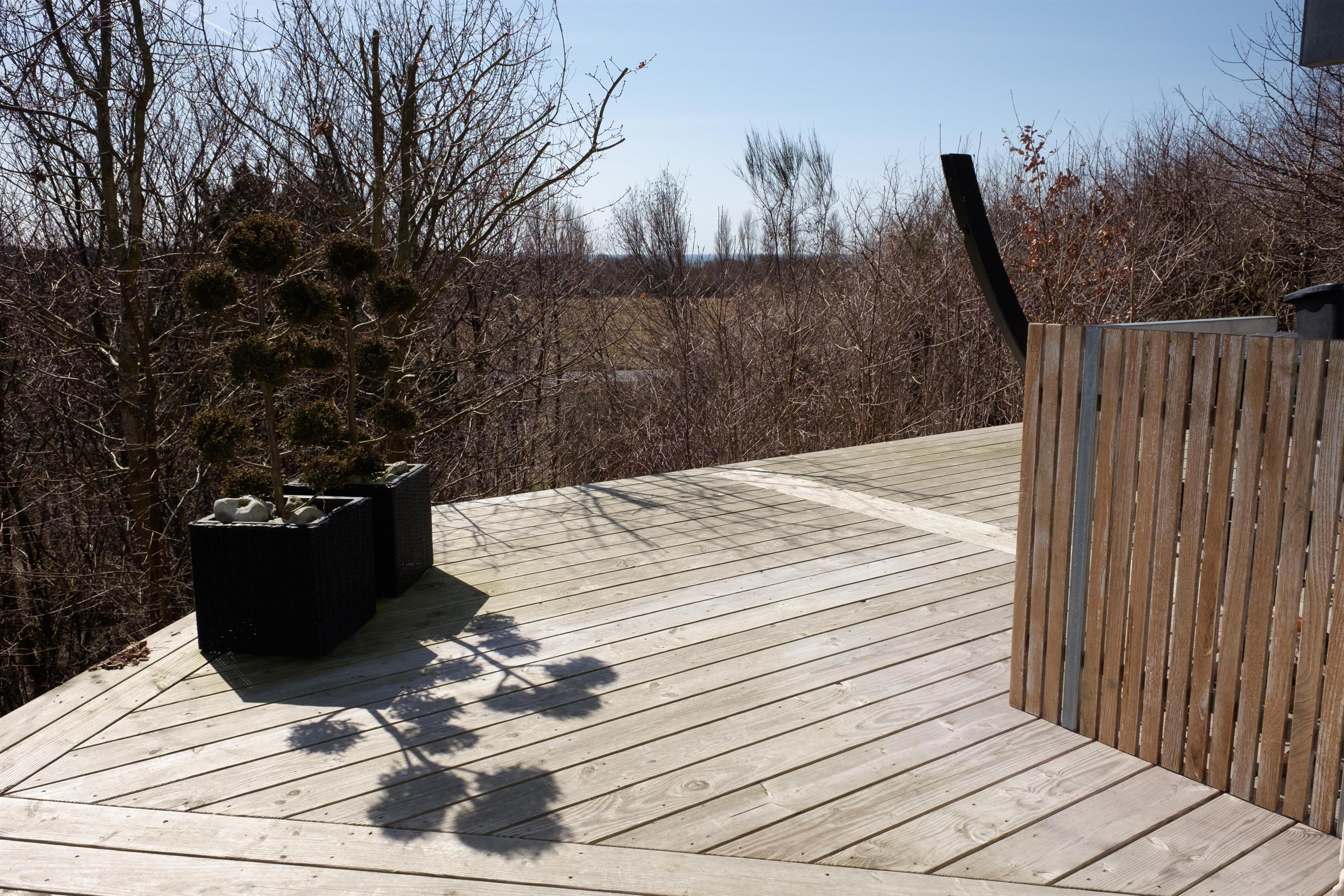 Charmerende sommerhus med udsigt over Aarhus Bugt og adgang til store terrasser i Øer Maritime Ferieby.