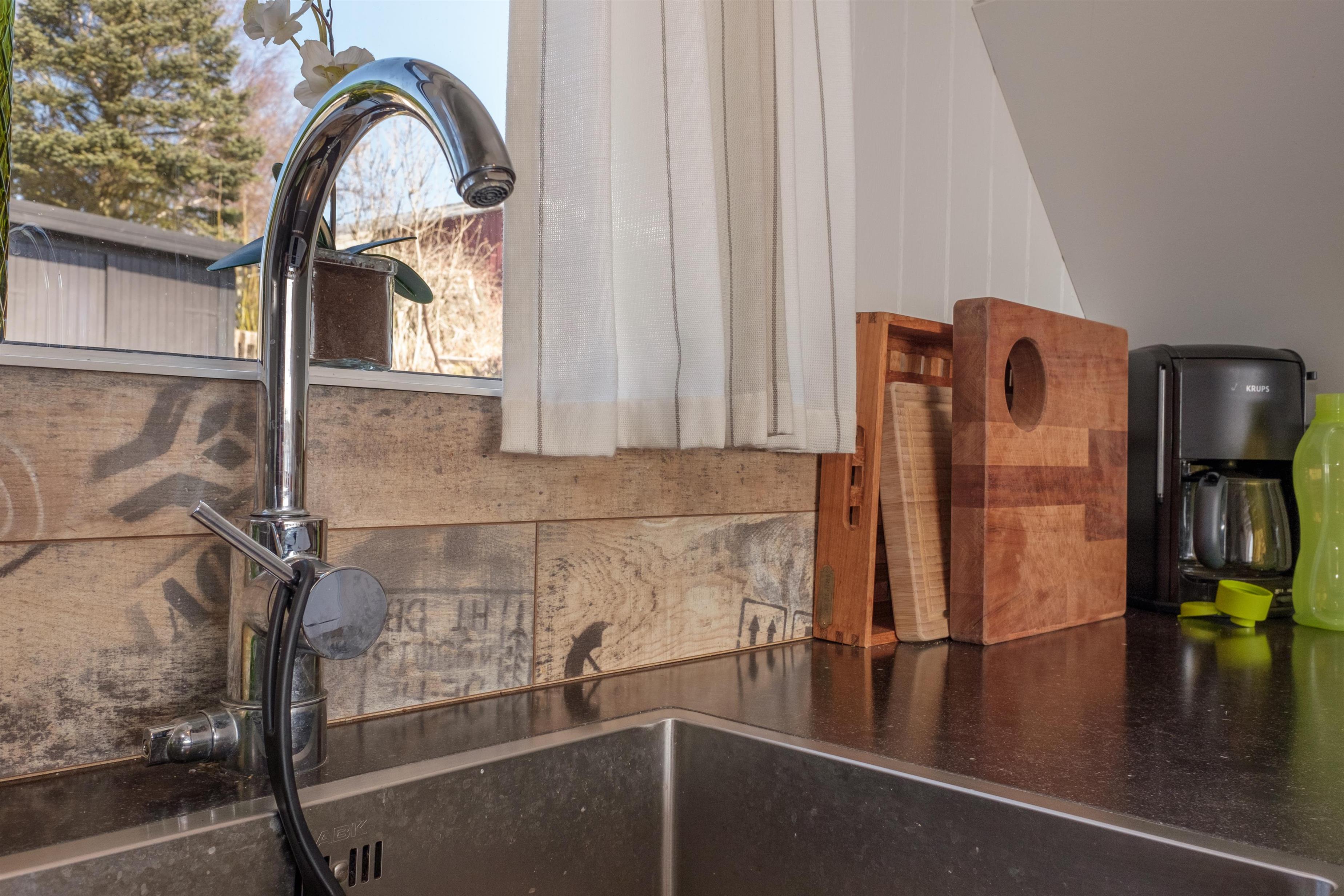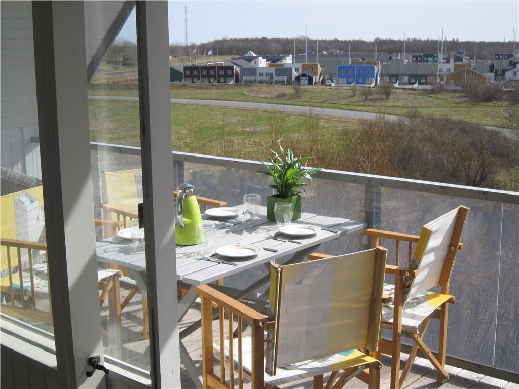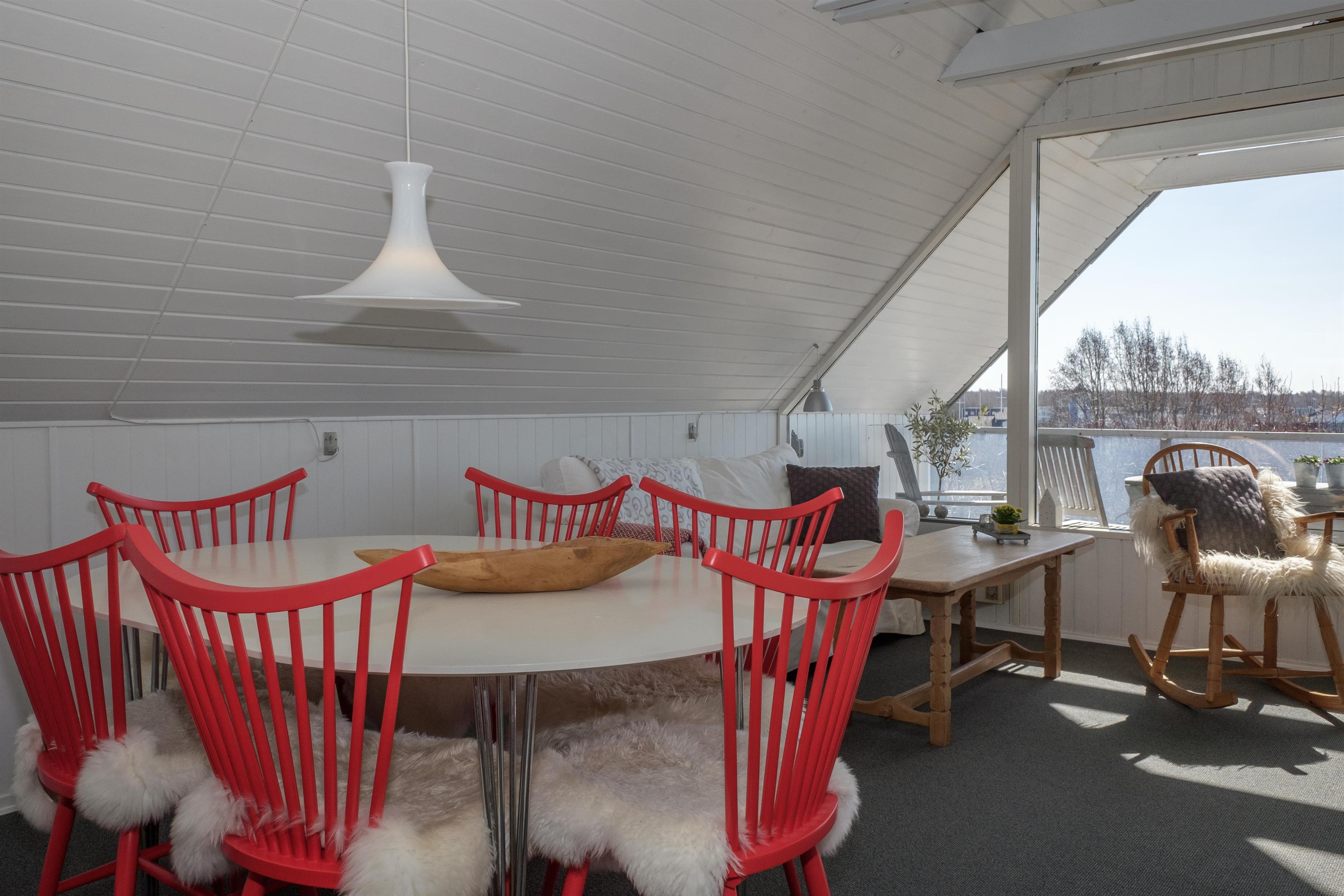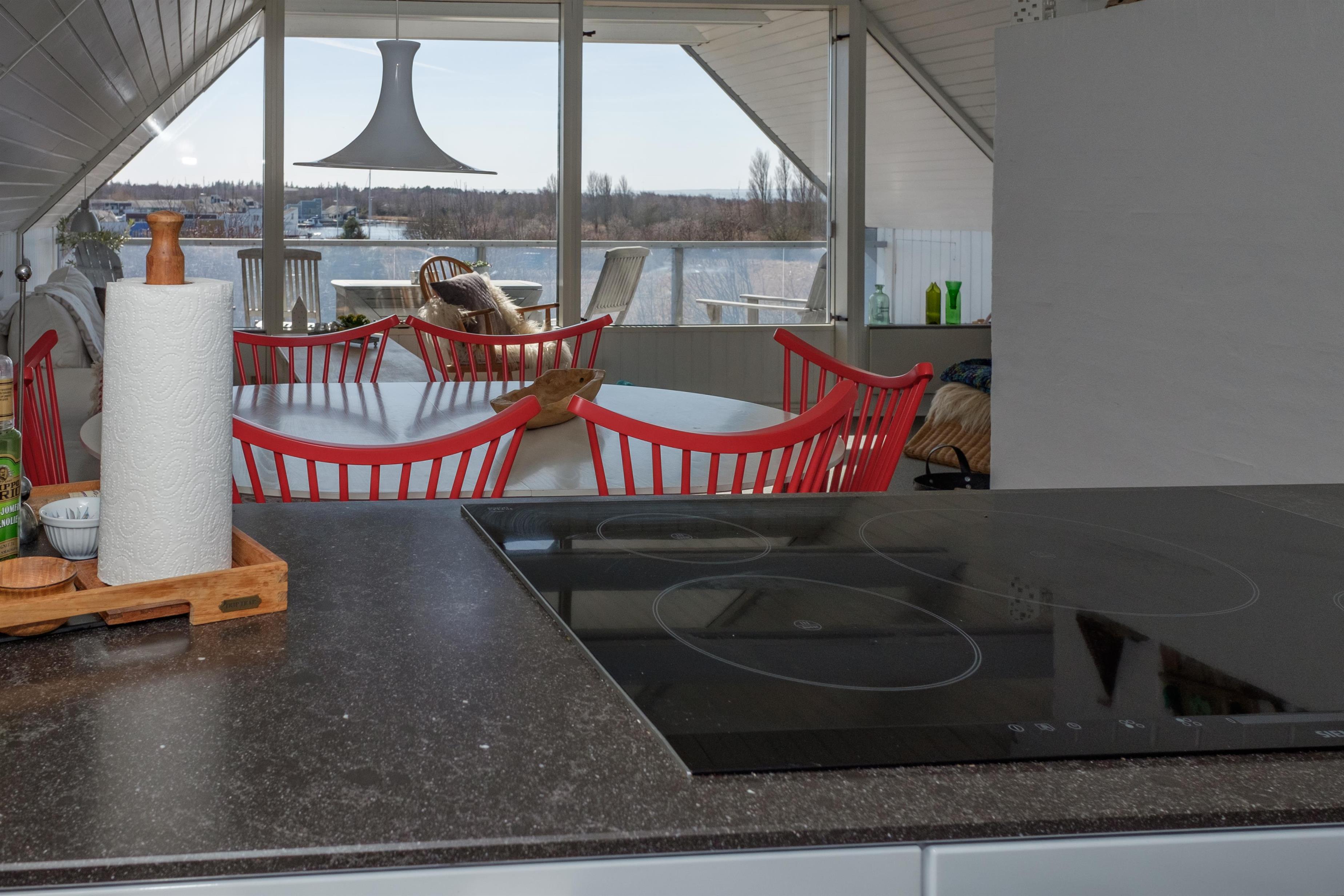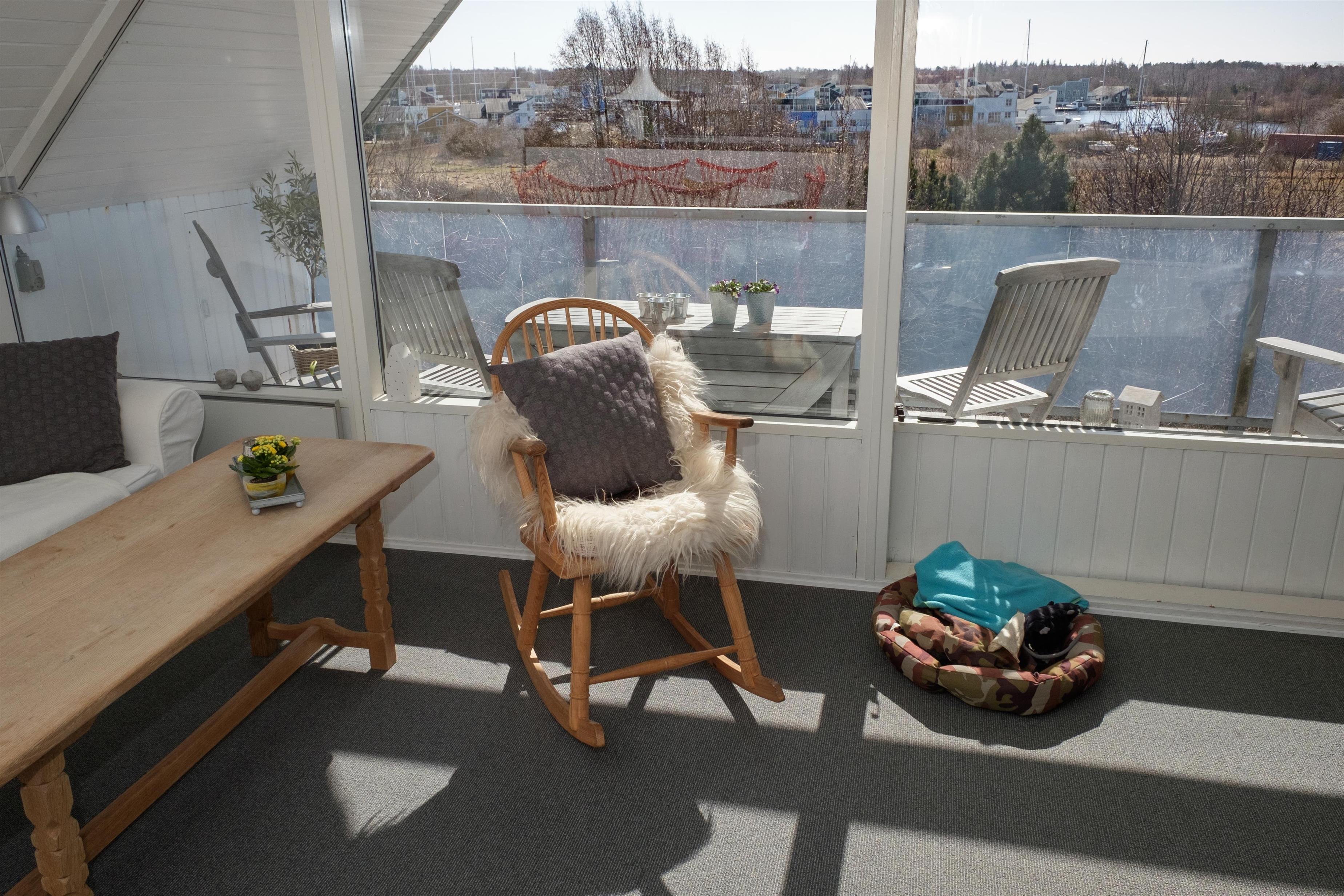 Charmerende sommerhus med udsigt over Aarhus Bugt og adgang til store terrasser i Øer Maritime Ferieby.