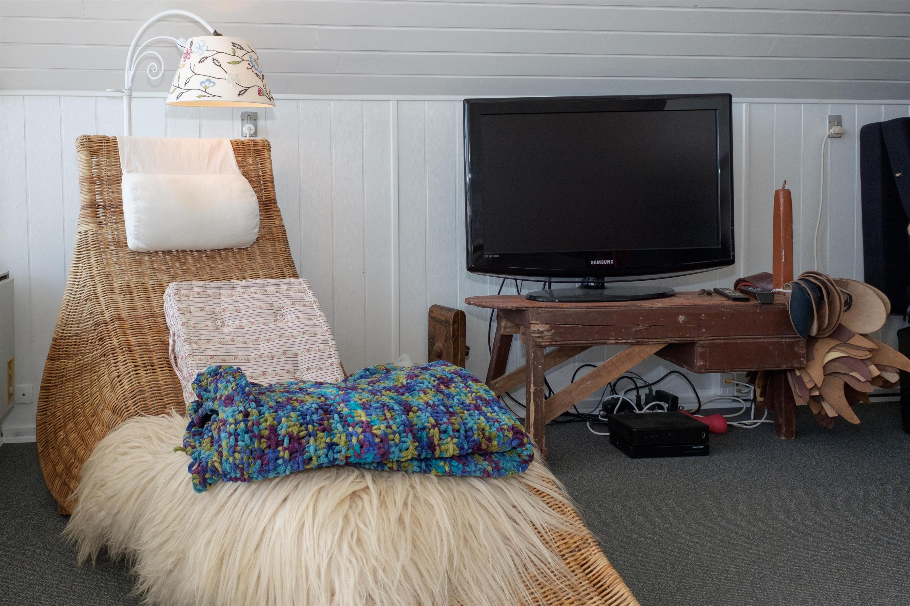 Smukt beliggende sommerhus i sten og i 2 etager beliggende på en skrånende grund med udsigt over Aarhus Bugt og Øer Maritime Ferieby. Huset er godt vedligeholdt med gode møbler. På 1. sal er der adgang fra stue/køkken til en stor, overdækket terrasse. I stueetagen er der 3 værelser med adgang til terrasser og gode lækroge. 3 nye boxsenge i værelserne. Stue: Brændeovn, TV med parabol (Astra), DVD og stereoanlæg med CD. Køkken: El-komfur, køleskab med 40 liter fryser, opvaskemaskine og vaskemaskine. 2 soverum: 1 med dobbeltseng og 1 med 2 enkeltsenge. Badeværelse: Toilet, bruser og håndvask. Åben terrasse med havemøbler. Elvarme. Internet.