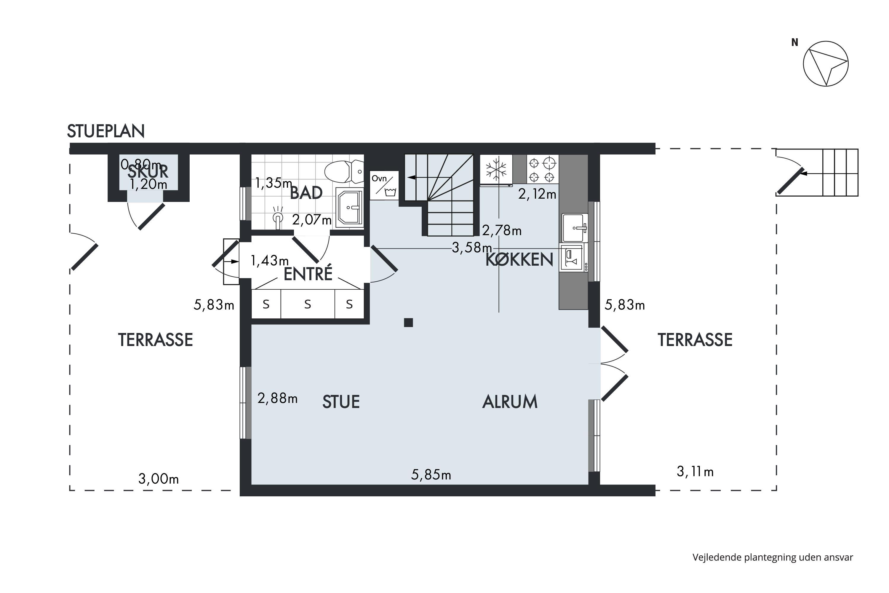 I underetagen er der dejlig lys og velmøbleret opholdsstue i åben forbindelse med det veludstyrede køkken/alrum, som har udgang til terrassen mod vest. Her er spiseplads til 6 personer, loungeafdeling med TV med danske (inkl. TV2) og tyske kanaler, samt lækkert, nyt køkken med keramiske kogeplader, indbygningsovn, køle-/fryseskab, opvaskemaskine og vaskemaskine. Dejligt badeværelse med skabsarrangement, bruseniche og gulvvarme. På førstesalen finder man husets 6 sovepladser; heraf 2 dobbeltsenge på 180x200 cm og en dobbeltseng på 140x200 cm. Der er internet.