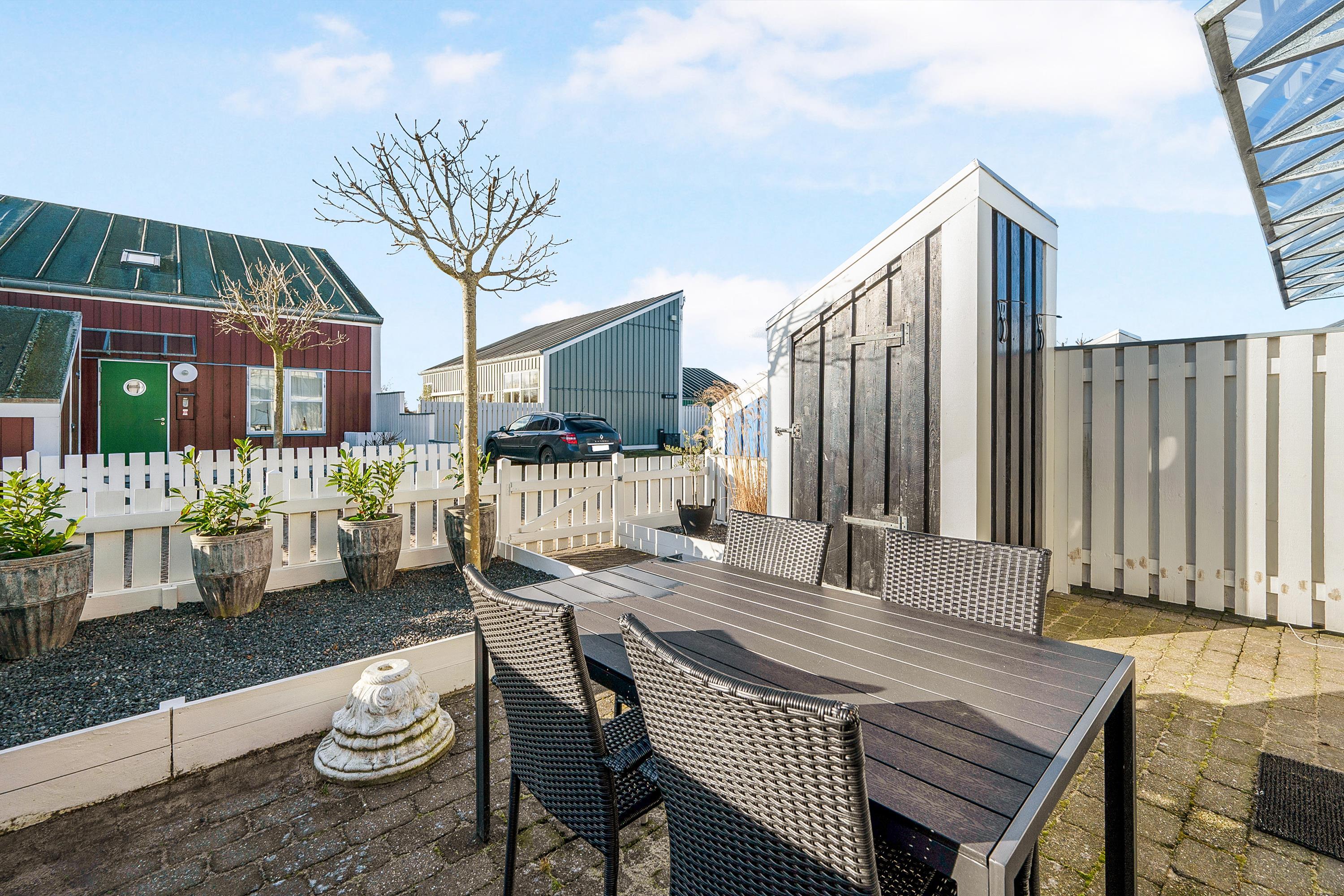 Hyggelig og velindrettet ferielejlighed i 2 plan beliggende i Øer Maritime Ferieby. Skøn, vestvendt terrasse med udsigt over bådepladserne samt hyggelig, østvendt gårdhave med fliser, hvor man kan nyde morgensolen. Der er havemøbler og grill.