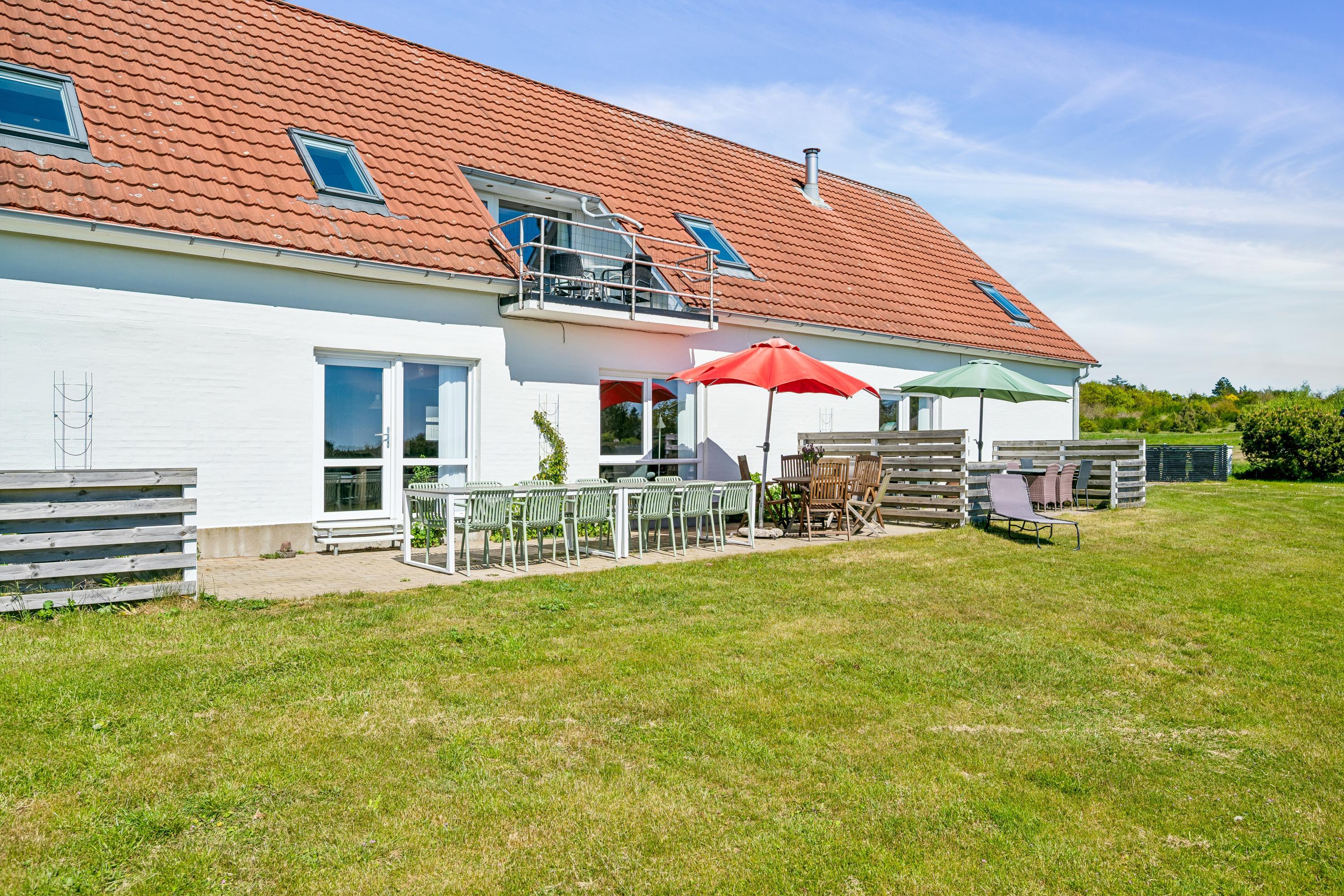 Velholdt, rummelig og indbydende ferielejlighed på højtliggende, åben naturgrund med panoramaudsigt over Kattegat og det kuperede landskab syd for Ebeltoft. Lejligheden ligger i stueplan og har en sydvestvendt fliseterrasse med havemøbler, liggestole og grill. På den store grund, som er fælles med tre andre ferielejligheder, er der bålplads samt gyngestativ og sandkasse til børnene.