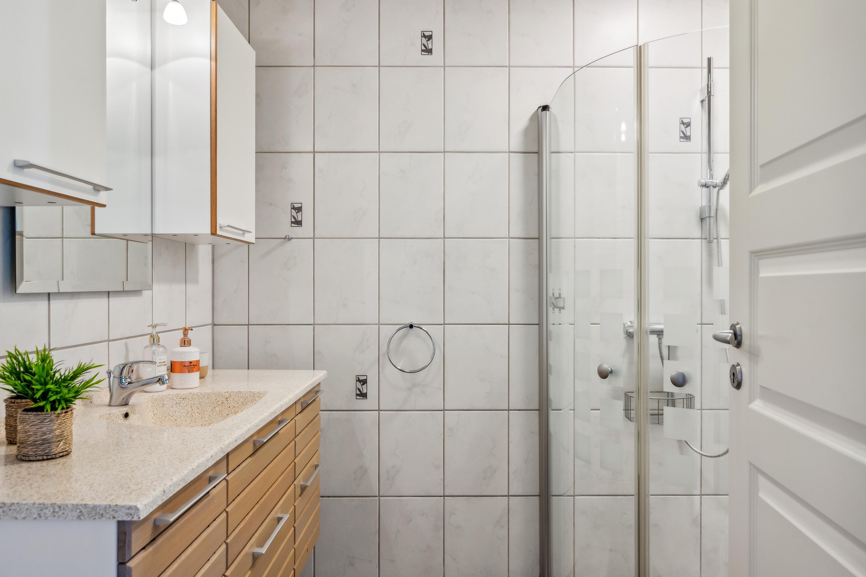 Lejligheden deler hoveddør med lejligheden på 1. sal og har egen indgangsdør i den fælles entré. Herfra kommer man via en lille mellemgang direkte ind i den store stue i åben forbindelse med køkken. Stuen har udgang til terrassen og rummer god spiseplads til 7 personer, to bekvemme sofaafdelinger med lænestole, TV med danske gratiskanaler, CD-afspiller samt radio. Stort, dejligt køkken med god arbejdsplads, keramiske kogeplader, indbygningsovn, stort køle-/fryseskab, opvaskemaskine og mikrobølgeovn samt endnu en spiseplads til 7 personer. Lejligheden råder over 7 sovepladser, som fordeler sig på 1 stort, lyst soveværelse med dobbeltseng, et lidt mindre værelse med 1 enkeltseng og 1 ekstra bred køjeseng foruden 2 sovepladser på sovesofa i stuen. Fint badeværelse med gulvvarme og bruseniche samt ekstra badeværelse med vaskemaskine og indgang fra entréen. Der er barneseng og barnestol til de mindste. Internetadgang.