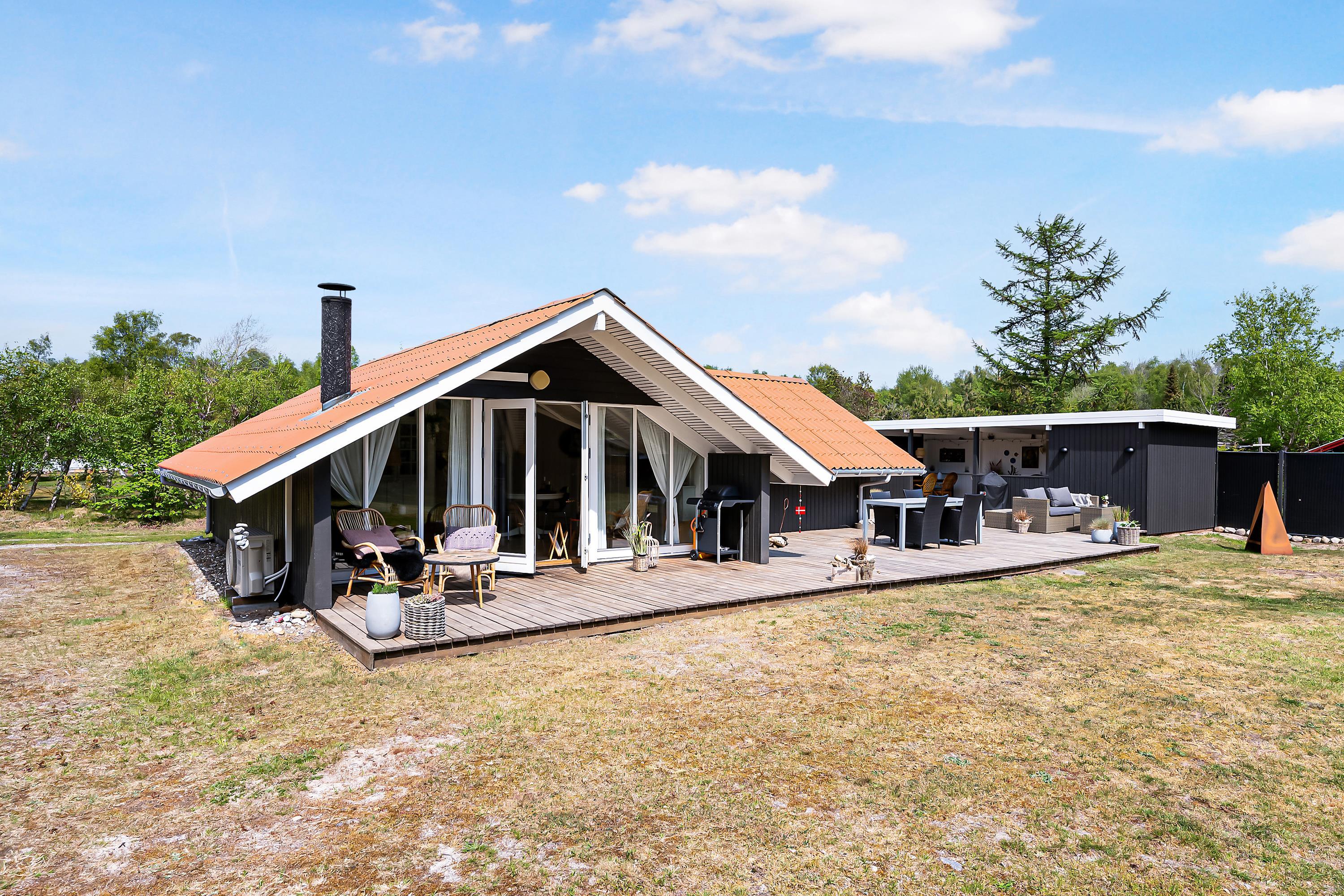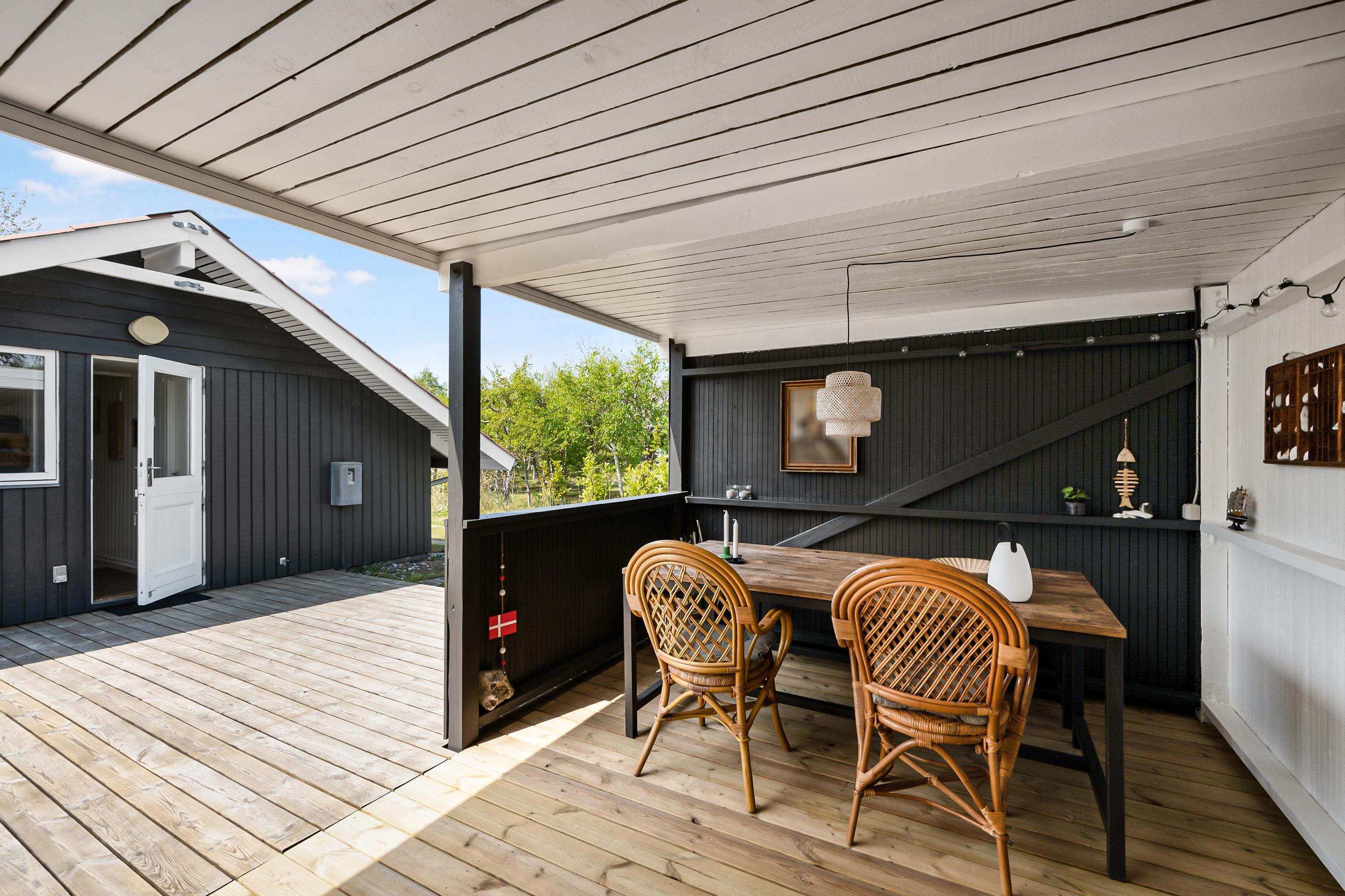 Hyggeligt renoveret feriehus nær Øer Strand med stor terrasse, brændeovn og kort afstand til børnevenlig badestrand.