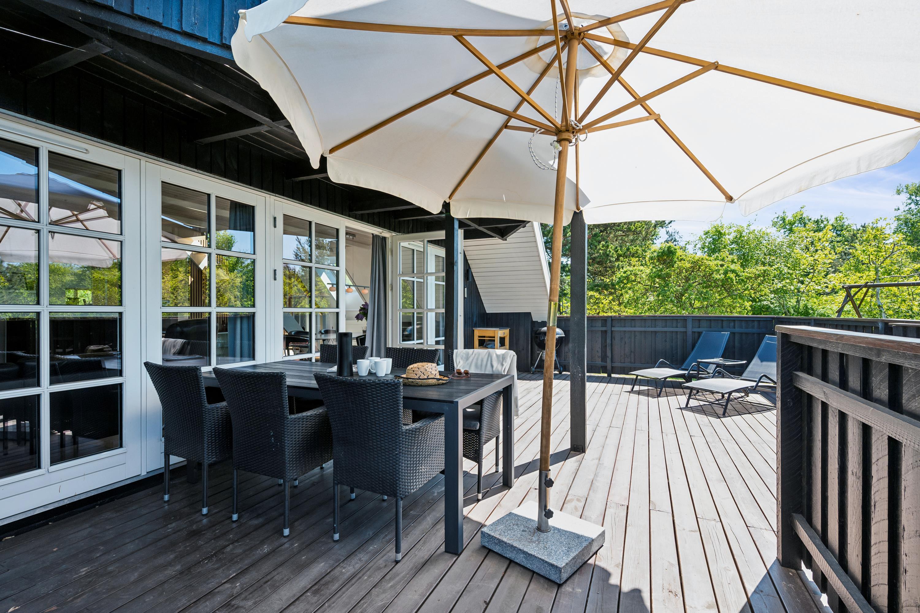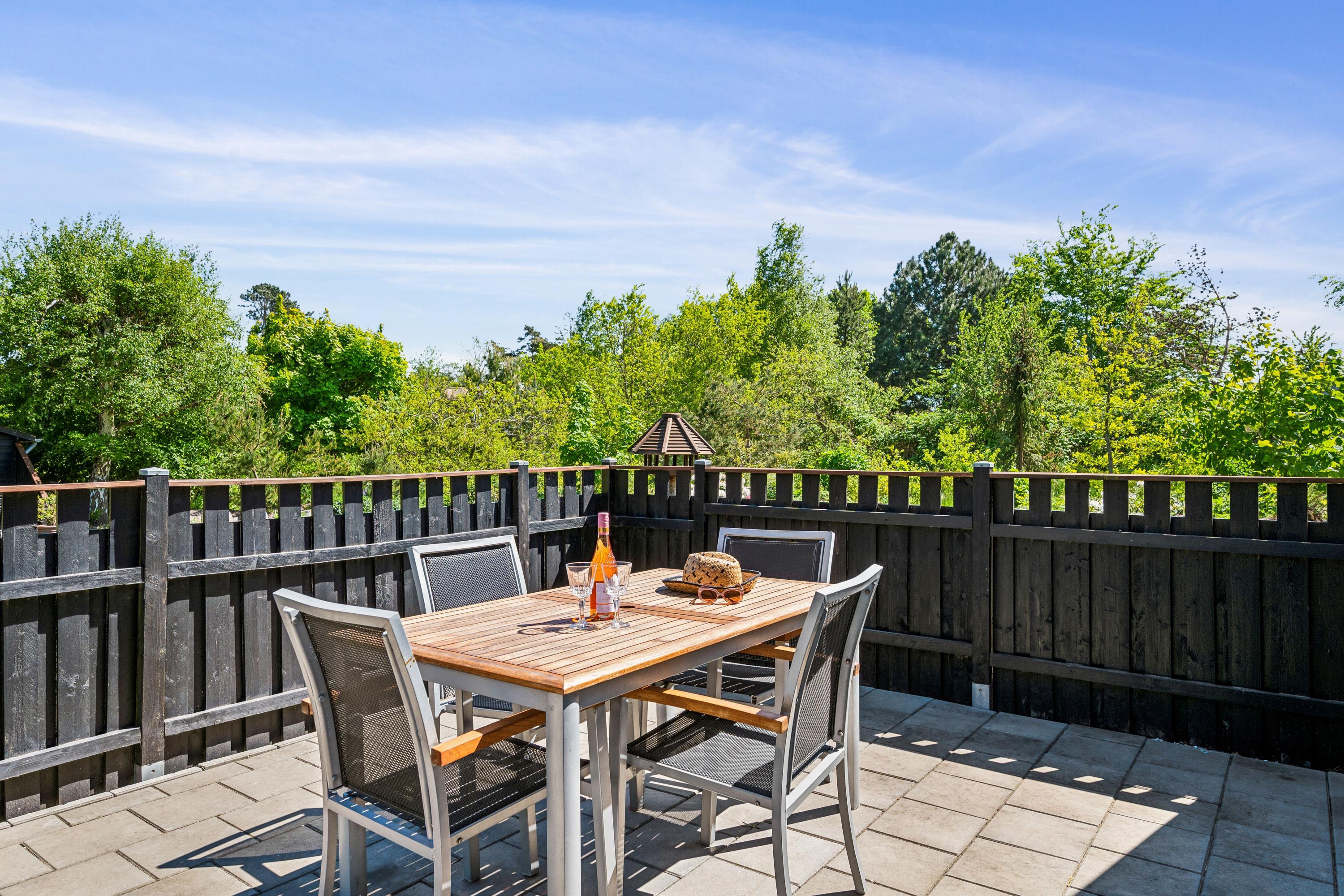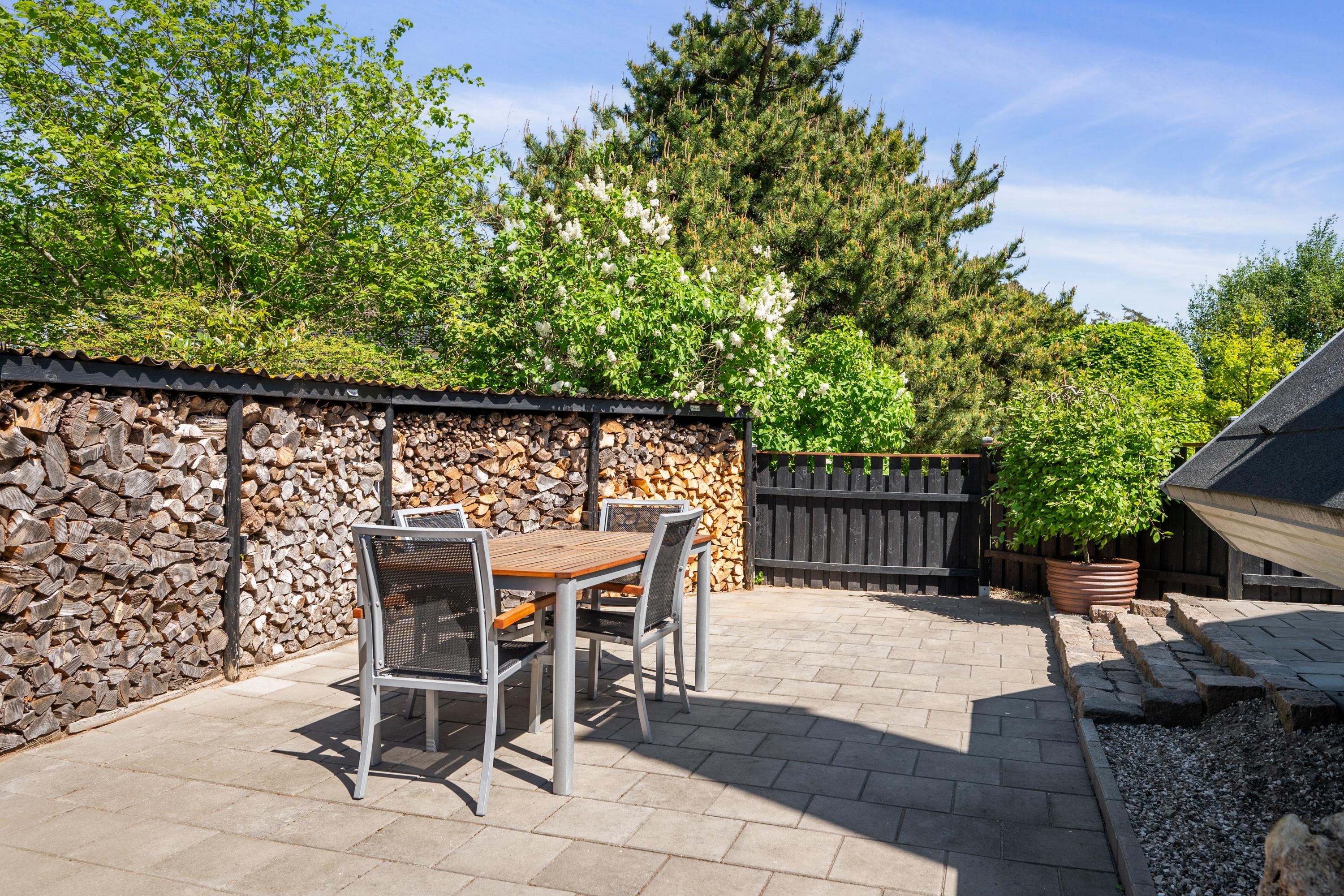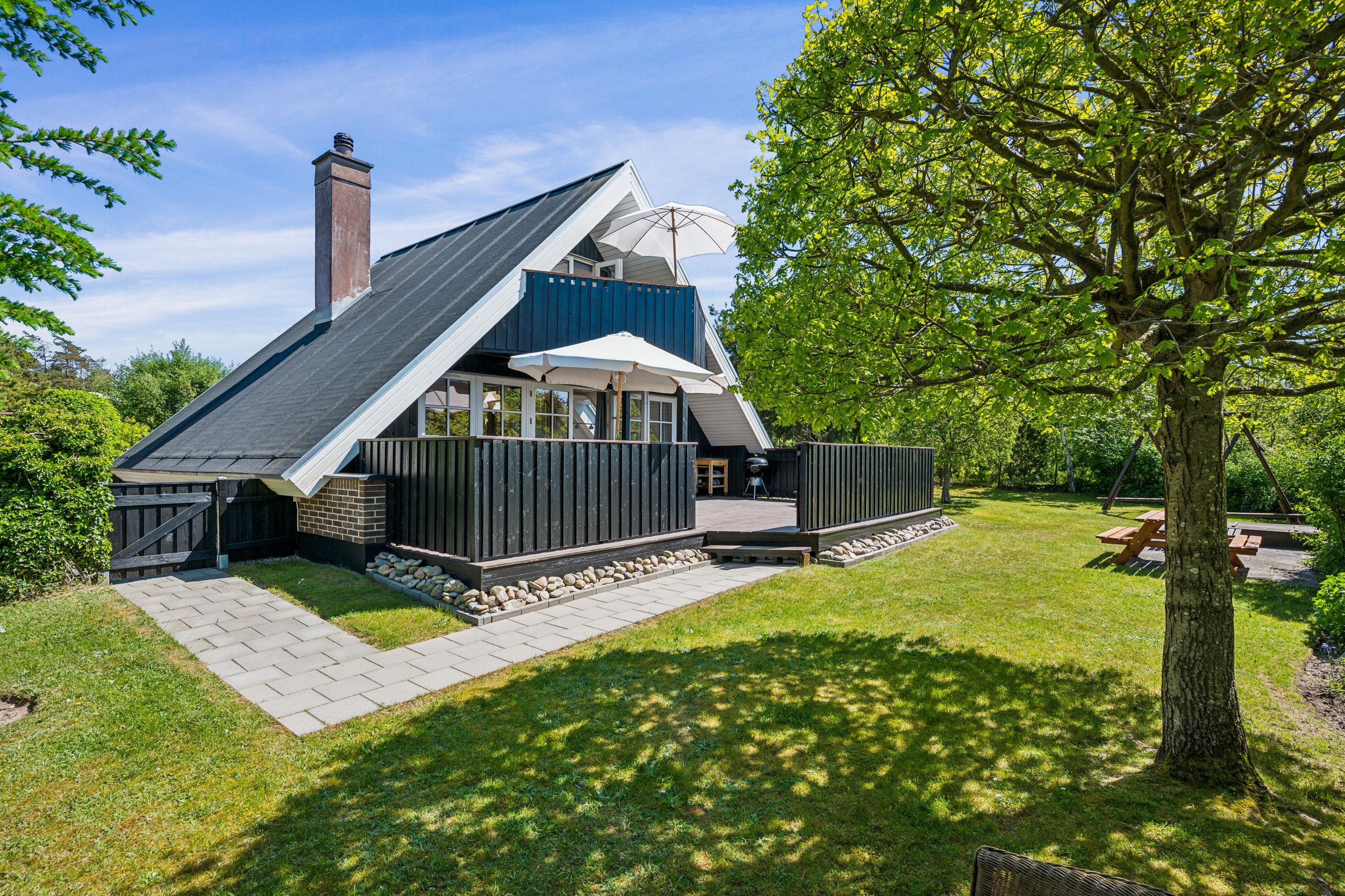 Hyggeligt og velholdt sommerhus nær Ebeltoft med skønne terrasser, brændeovn og børnevenlige faciliteter.