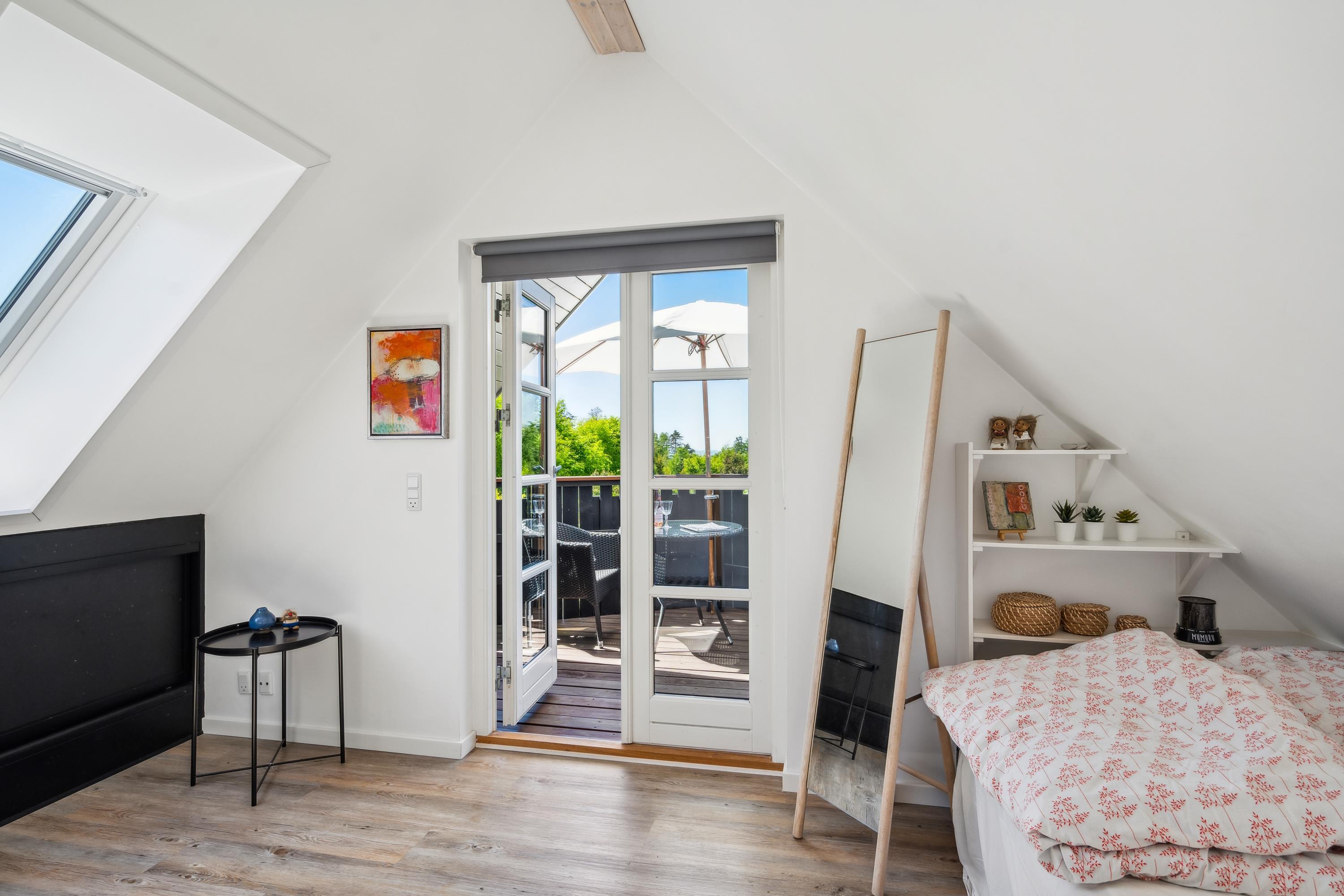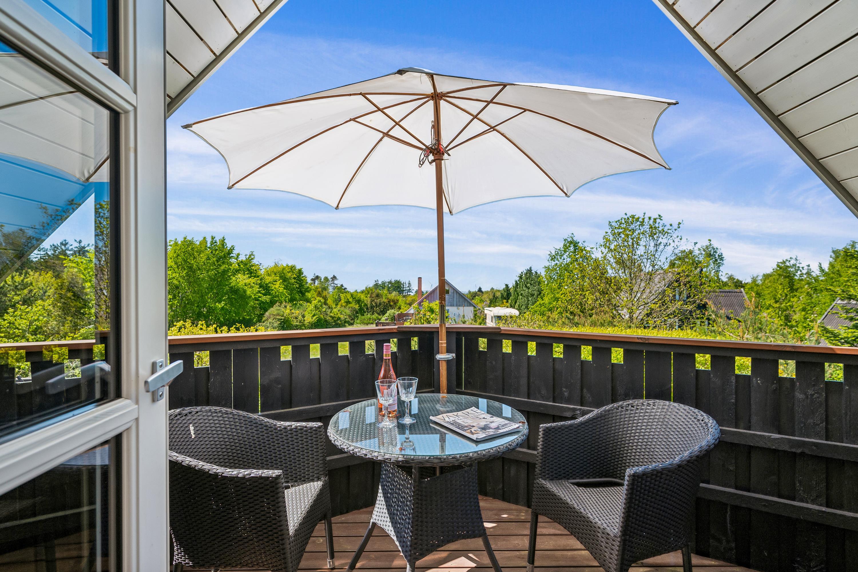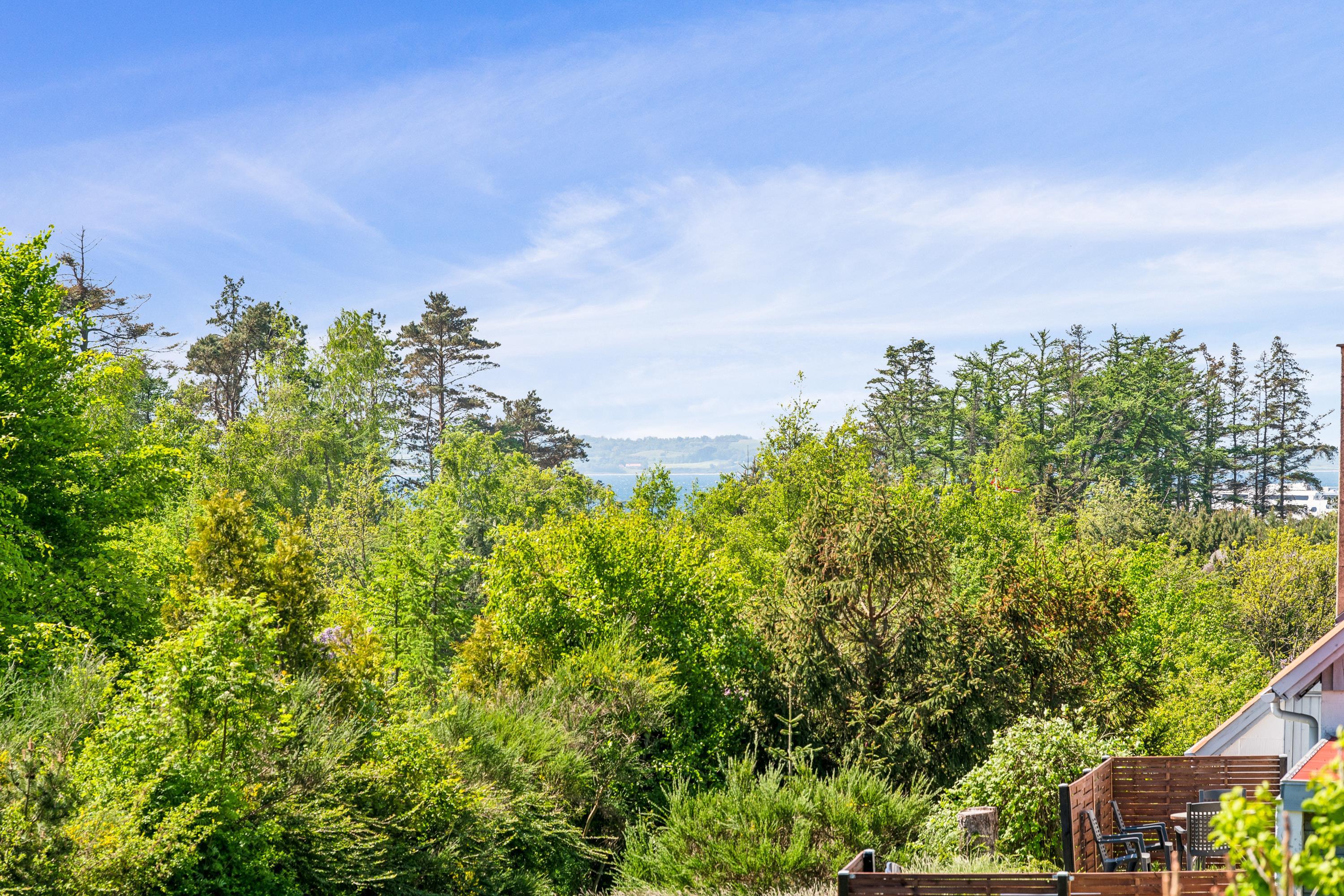 Kun ti minutters kørsel fra Ebeltoft finder du dette meget hyggelige og velholdte sommerhus. Huset strækker sig over to etager, og i stueetagen finder du en virkelig hyggelig stue, udstyret med gode møbler, brændeovn og varmepumpe. Fra stuen har du direkte adgang til en af husets terrasser med gode havemøbler. I forbindelse med stuen finder du det mindre, men velfungerende køkken, blandt andet med en opvaskemaskine. Hyggeligt værelse med to enkeltsenge og et flot badeværelse med bruser. Fra stuen fører en trappe til første sal. Der finder du et soveværelse med dobbeltseng og et værelse med enkeltseng. Herfra er der adgang til en lille terrasse, hvorfra du har den smukkeste udsigt over landskabet. Udendørs finder du flere skønne terrasser med havemøbler, liggestole og parasoller. Huset ligger på en virkelig flot og velholdt grund, hvor der for de små feriegæster er en sandkasse og en gynge. Her er også et dejligt bålsted, så du på en varm sommeraften kan samles omkring bålet og lave snobrød.