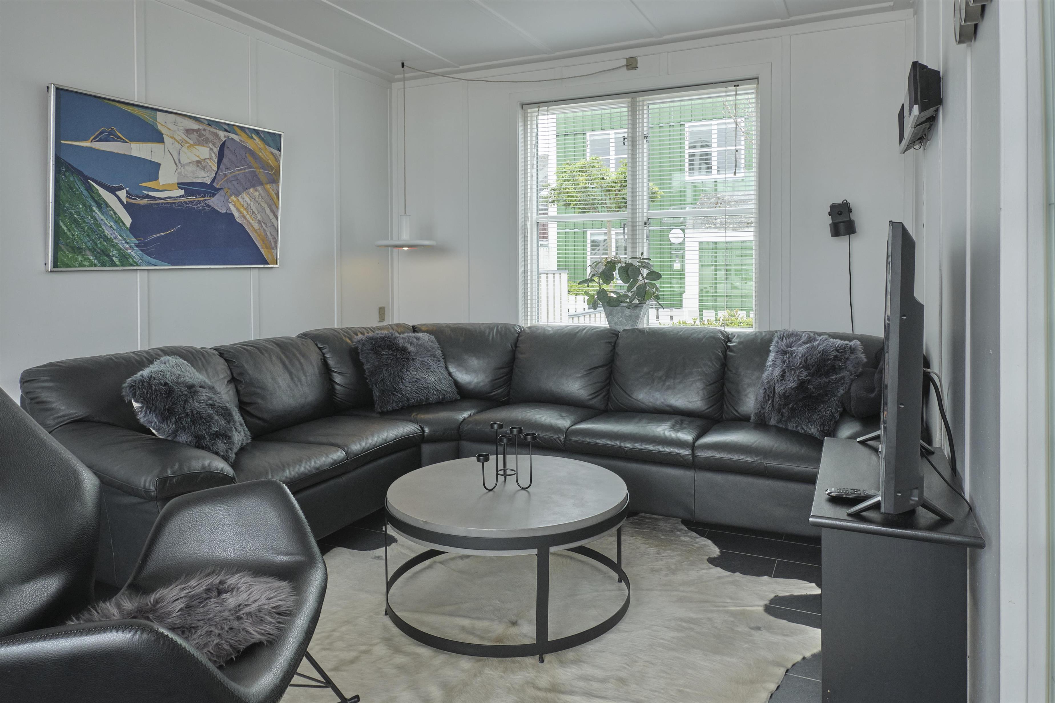 Flot indrettet ferielejlighed i 2 plan beliggende i det naturskønne Øer Maritime Ferieby og med dejlig udsigt til bådpladserne. fra terrasse, køkken og stue. Stor, skøn træterrasse med havemøbler, liggestole, parasol og grill, samt hyggelig, flisebelagt gårdhave med god læ.
