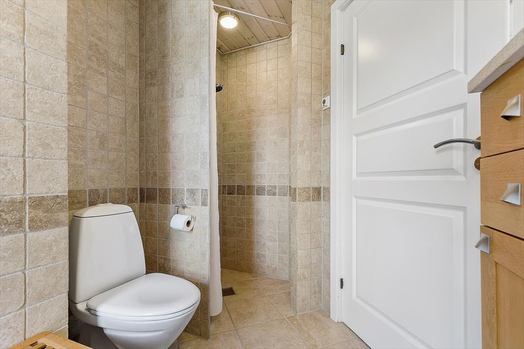 Fra stuen er der direkte adgang til en stor flisebelagt terrasse, som omkranser hele huset. Her finder I masser af muligheder for at slappe af og nyde den friske luft. Terrassen inviterer til lange sommeraftener med grill, vin og udsigten til det smukke terræn og Ebeltoft Vig. Haven er et sandt paradis for børnene med både sandkasse og legehus, der sikrer timevis af leg og sjov. Den vestvendte terrasse er perfekt til at få det sidste med af dagens solstråler, mens I nyder roen og den fantastiske natur omkring jer.