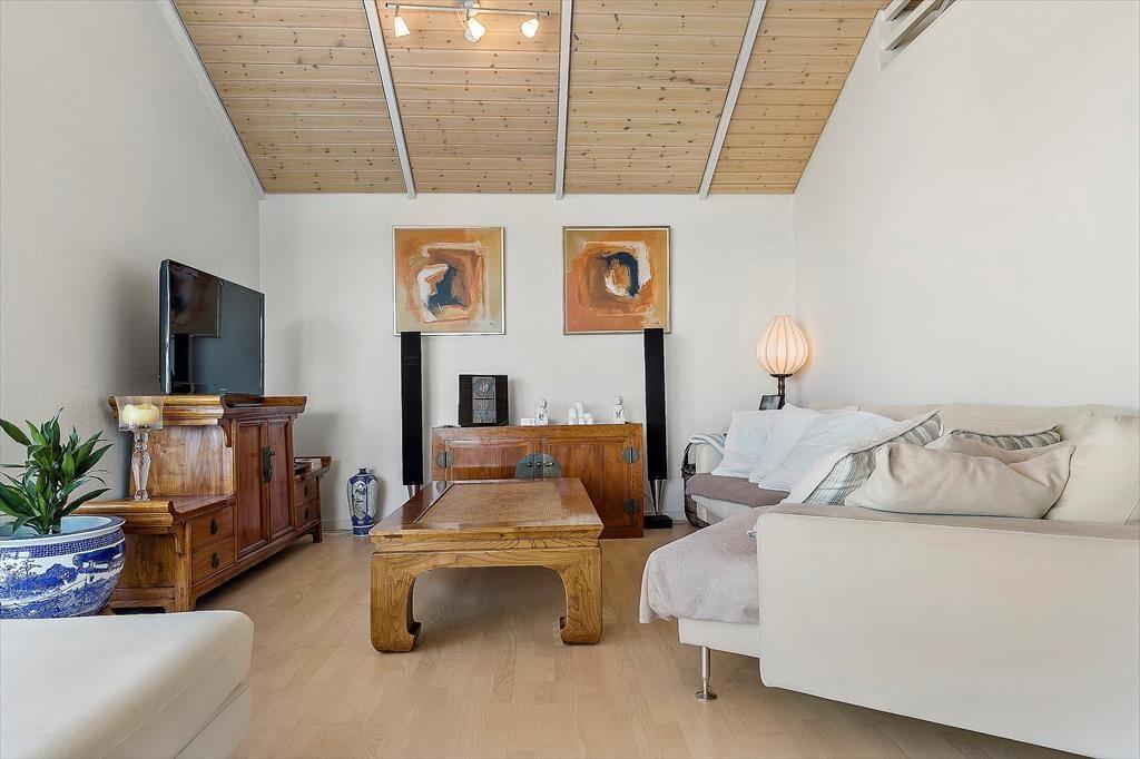 Dette skønne feriehus syd for Ebeltoft by byder på en fantastisk udsigt over Ebeltoft Vig og en indretning, der får dig til at føle dig hjemme fra første øjeblik. Husets køkken, spisestue og dagligstue er samlet i ét, hvilket skaber en hyggelig atmosfære med havudsigt fra alle disse rum. Med plads til 8 personer fordelt på 4 dejlige soveværelser – 3 med dobbeltsenge og 1 med køjeseng – er her plads til både familie og venner. De to badeværelser er moderne og praktiske, hvor det ene byder på spabad og sauna, mens det andet har en vaskemaskine. I det store og veludstyrede køkken med kogeø kan I let tilberede alt fra hurtige snacks til gourmetmiddage. Aftenerne kan nydes foran brændeovnen, hvor der er rig mulighed for hygge med spil, bøger og film.