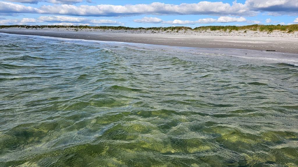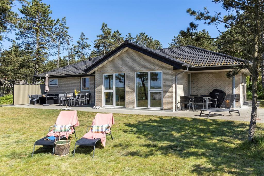 Udendørs kan du nyde livet på den smukke naturgrund, der giver en helt enestående udsigt til havet. Her er der to dejlige terrasser, hvor du kan samles med familien om aftensmaden ved grillen eller nyde morgenkaffen i ro og mag. For familiens yngste medlemmer er der en sandkasse og et gyngestativ, som vil give timevis af leg og glæde. Kun 150 meter fra huset finder du en dejlig badestrand med lavt vand og sandbanker – perfekt for børn og voksne, der elsker strandlivet.