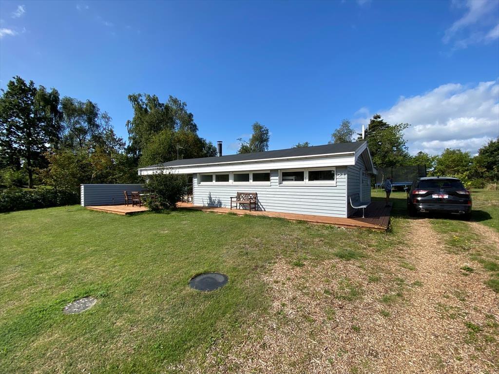 Udenfor venter en stor, ugeneret hjørnegrund, der skaber en følelse af ro og privatliv. Grunden er omgivet af en lukket vej. Den åbne terrasse indbyder til lange sommeraftener under åben himmel, hvor grillen kan tændes, og feriefreden kan nydes i fulde drag. Her er der rig mulighed for at samle familien til solrige eftermiddage og hyggelige måltider i det fri. Beliggenheden tæt på vandet gør det nemt at tage en dukkert ved den børnevenlige strand eller bare nyde udsigten over det maritime landskab. Med rolige omgivelser og minimal trafikstøj får du de perfekte rammer for afslapning og uforglemmelige øjeblikke i naturen.