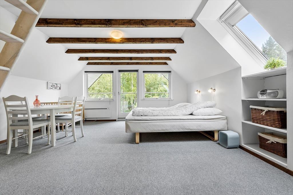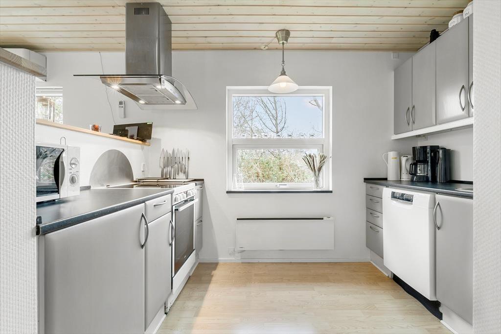 Hvis du kan løsrive dig fra udestuen og gårdhaven på dette hus, vil du opleve at der ligger så megen natur lige udenfor den afskærmede grund. Efter 3 min. Gang kan du stå med fødderne i vandet og kan nyde det smukke udsigt. Her er mange surfere og kitesurfere som fanger vinden og flyver hen over vandet, når det blæser lidt. Du kan også tage en morgendukkert, eller slutte dagens oplevelser af med at sige godnat til solen der. Huset har en stor flad græsplæne som indbyder til leg og spil ligesom der er flere terrasser, hvor du kan sidde og nyde freden og roen.