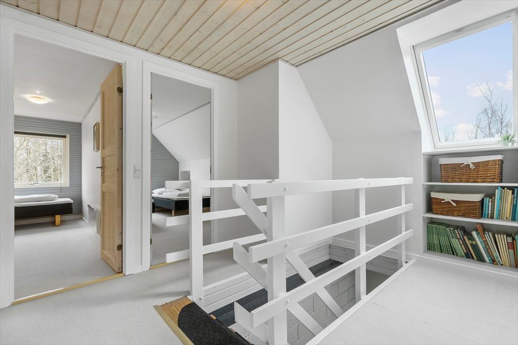 Huset har meget god plads op på første salen er der flere dejlige værelser, et badeværelse og en svalegang hvor udsigten også er flot.
