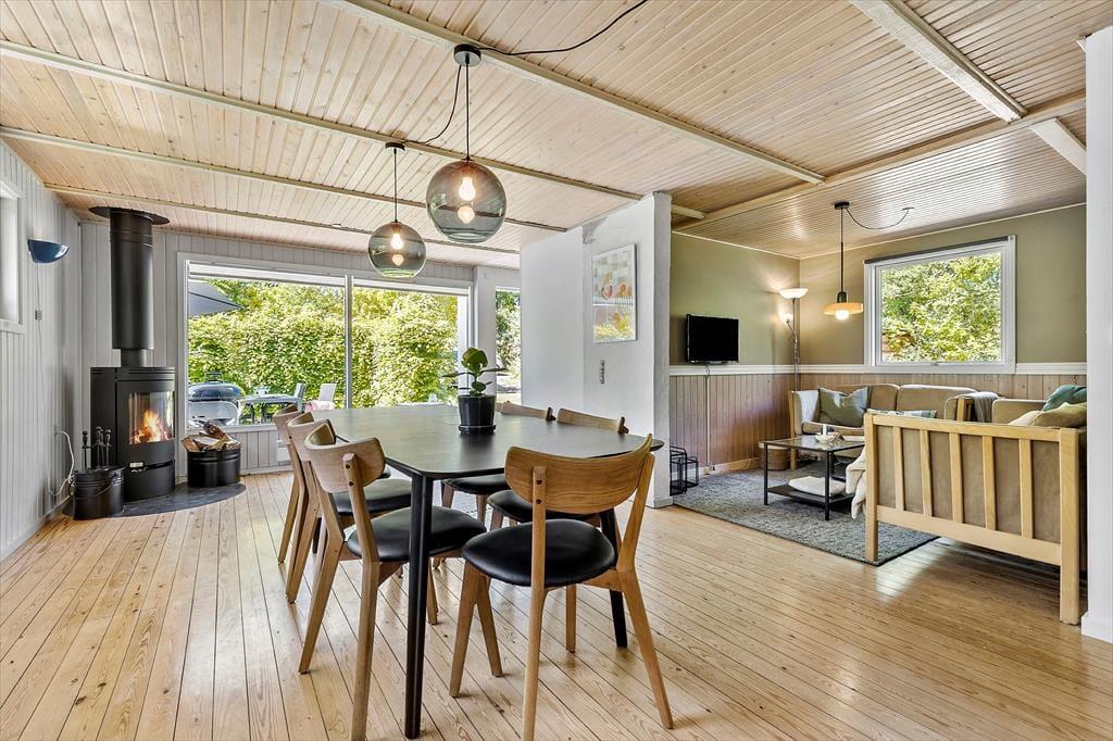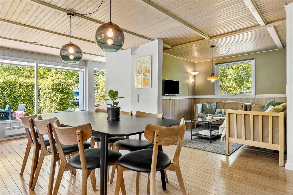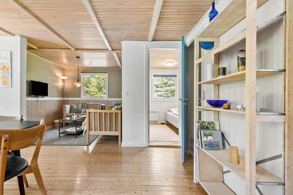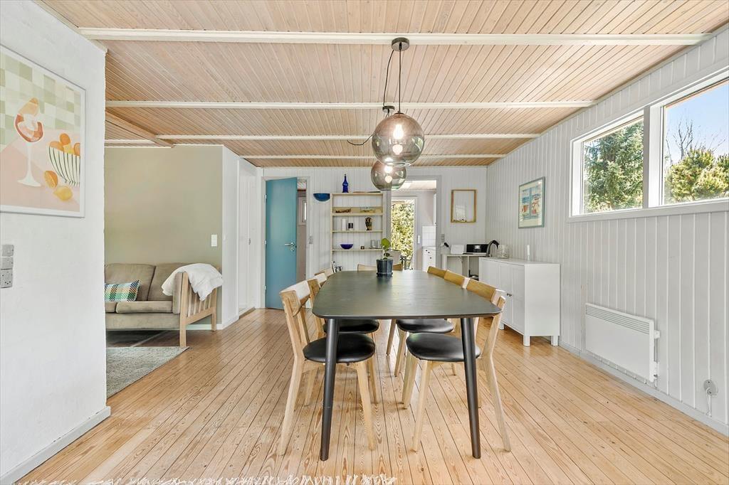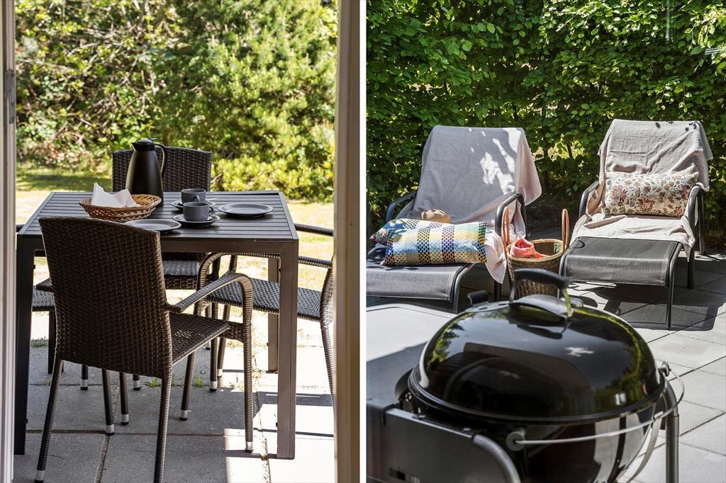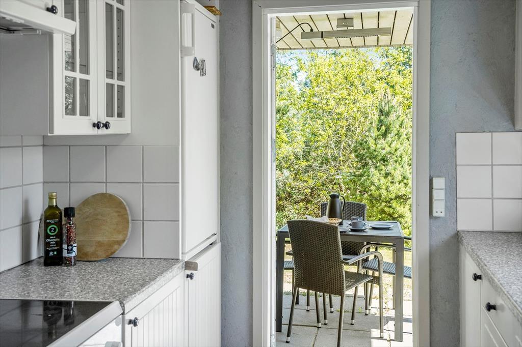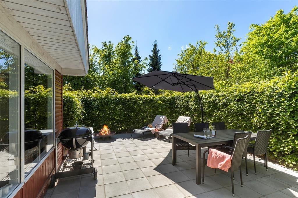 Udenfor venter en stor, delvist overdækket terrasse – perfekt til grillaftener og solrige dage. Den rummelige have indbyder til leg og afslapning, og med kun 600 meter til stranden er du aldrig langt fra en dukkert i havet. Området omkring Øer er ideelt til både cykling og gåture, og du kan nyde den smukke natur året rundt.
