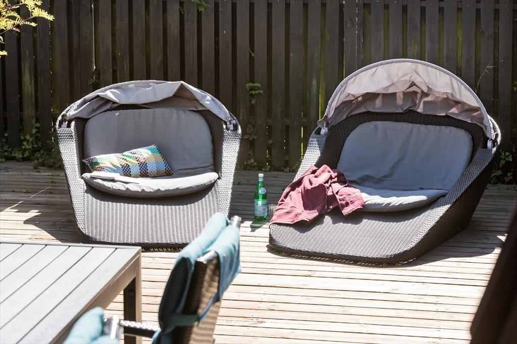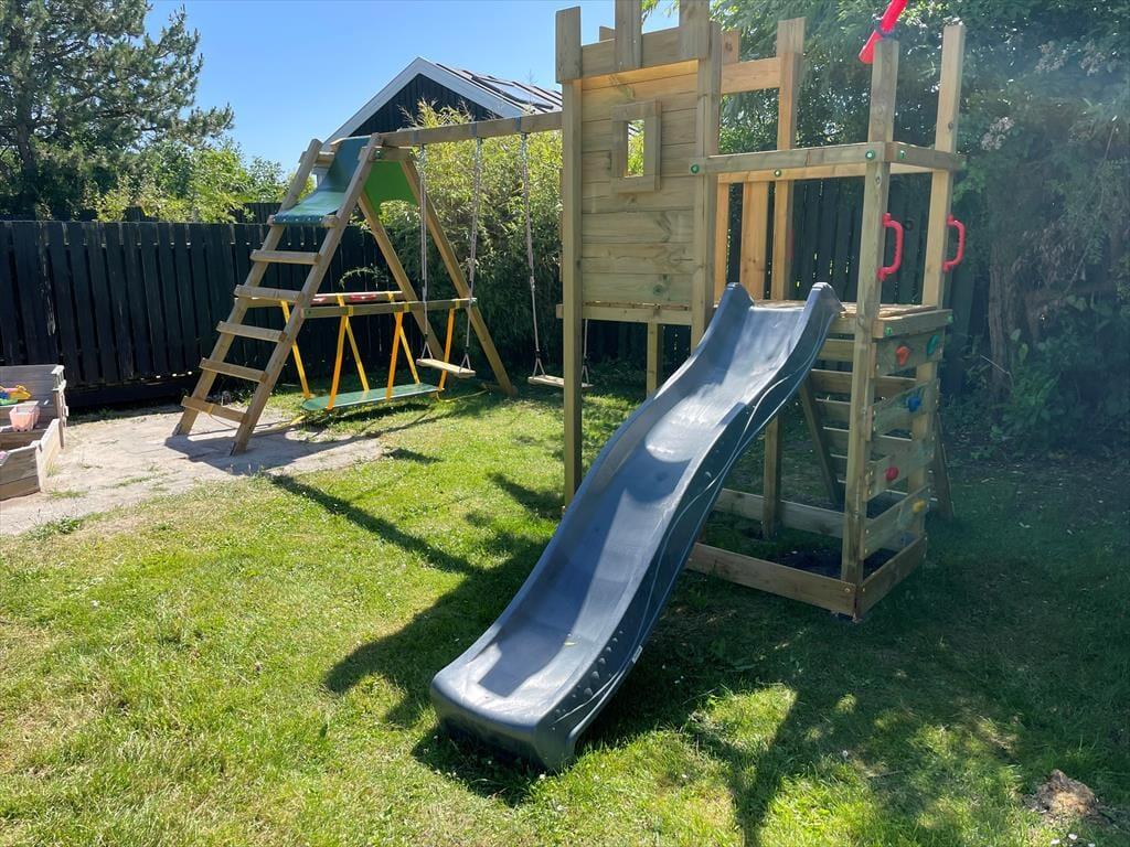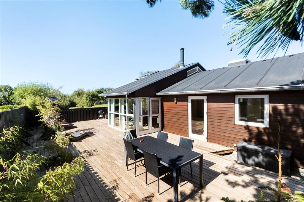 Huset er beliggende på en dejlig grund og omkranset af flere terrasser, både åbne og overdækkede, der giver rig mulighed for at nyde udelivet uanset vejret. De gode havemøbler og grillen indbyder til hyggelige stunder med familie og venner. Også de små feriegæster er der tænkt på, da haven er udstyret med både sandkasse, gynger og en rutsjebane. Derudover er stranden kun en kort gåtur væk, perfekt til morgensvømning eller en afslappende gåtur langs vandet.