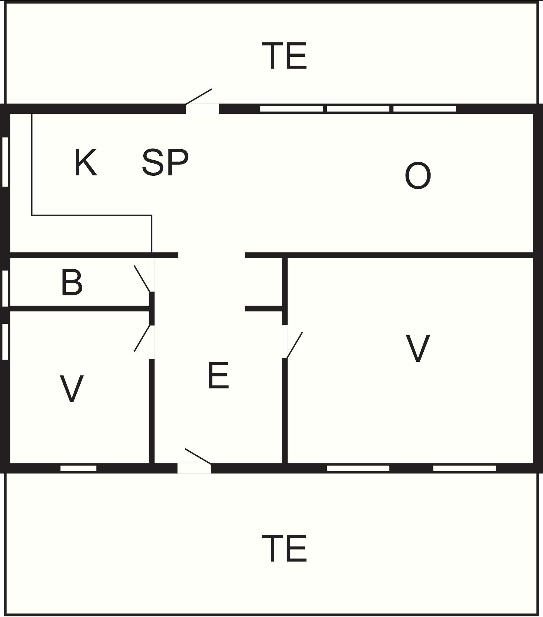 2 Soveværelser: (1DS)+(1DS+2K), barneseng