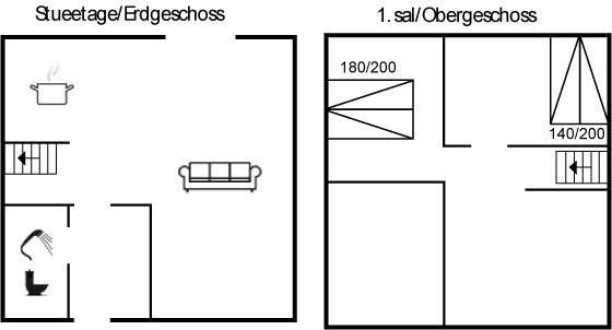 Der er i alt 2 soveværelser. Sovepladserne fordeler sig på: 4 sovepladser i dobbeltsenge. 1 soveplads i enkeltseng. 1 af disse sovepladser befinder sig på husets hems.