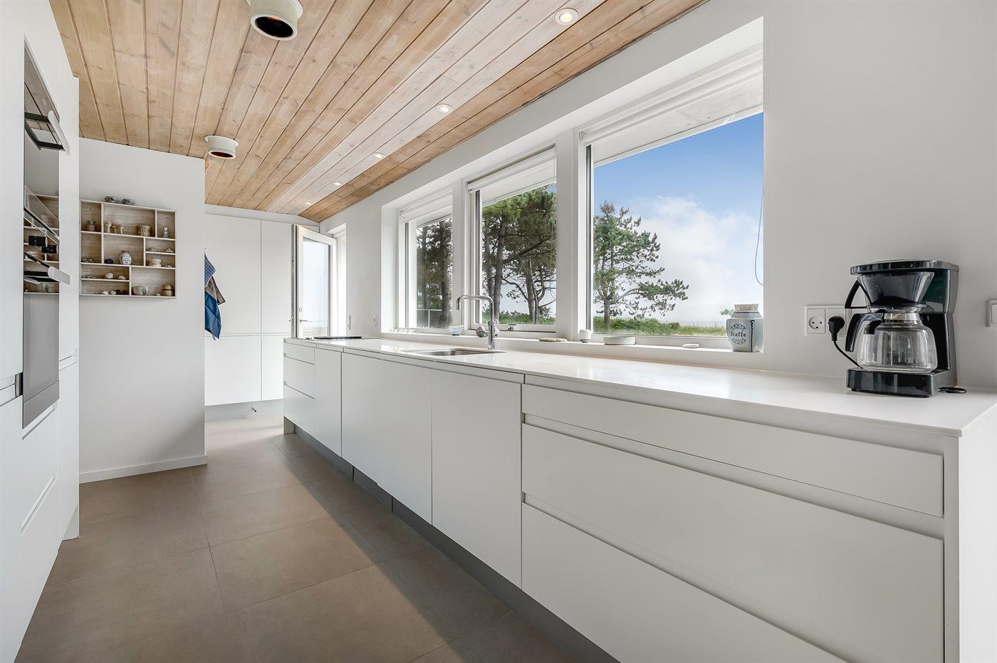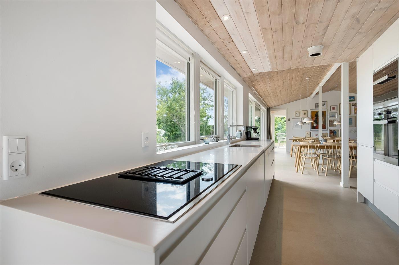 Køkkenet er udstyret med 2 køleskabe. Der er 4 induktionskogeplader, varmluftovn, mikrobølgeovn samt opvaskemaskine.