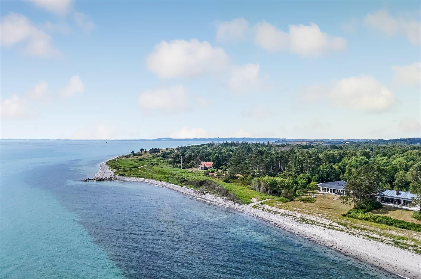 Luksuriøst sommerhus ved Ebeltoft med privat strand, indendørs pool og havudsigt, totalrenoveret i 2025.