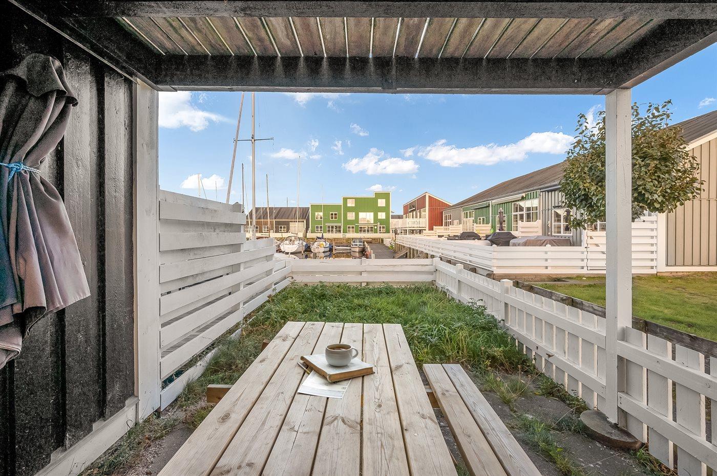 Ferieboligen er beliggende på en 110 m² stor havegrund. Der er 10 m til havet. Nærmeste forretning er beliggende i en afstand af 300 m. Til ferieboligen hører åbent terrasseareal. Der ligger en legeplads i en afstand af 300 m. Parkering ved ferieboligen.