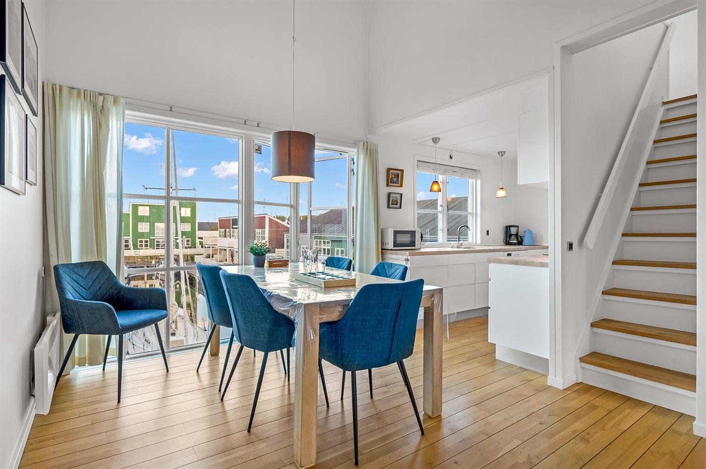 Ferieboligen fremstår lyst og velholdt - med en god planløsning fordelt på to plan. Boligen er løbende moderniseret og passer rigtig godt til f.eks. en familie, som ønsker at holde en fælles ferie i disse skønne omgivelser. Det er også muligt at medbringe familiens firbenede ven. Til boligen hører også en dejlig terrasse, som ligger helt ud til vandet.