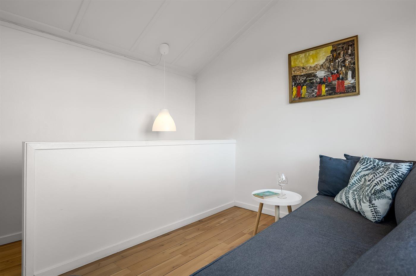 Der er i alt 3 soveværelser. Sovepladserne fordeler sig på: 4 sovepladser i dobbeltsenge. 2 sovepladser i enkeltsenge.