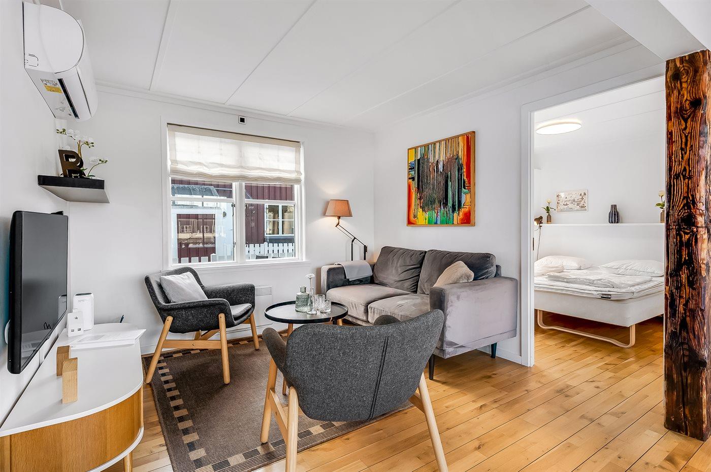 Ferielejligheden egner sig til 4 personer. Ferieboligen er på 57 m² og er bygget i 1988. I 2018 gennemgik ferieboligen en delvis renovering. Det er tilladt at medbringe 1 husdyr. Ferieboligen er udstyret med energibesparende luft til luft varmepumpe. Frysekapacitet på 80 liter.