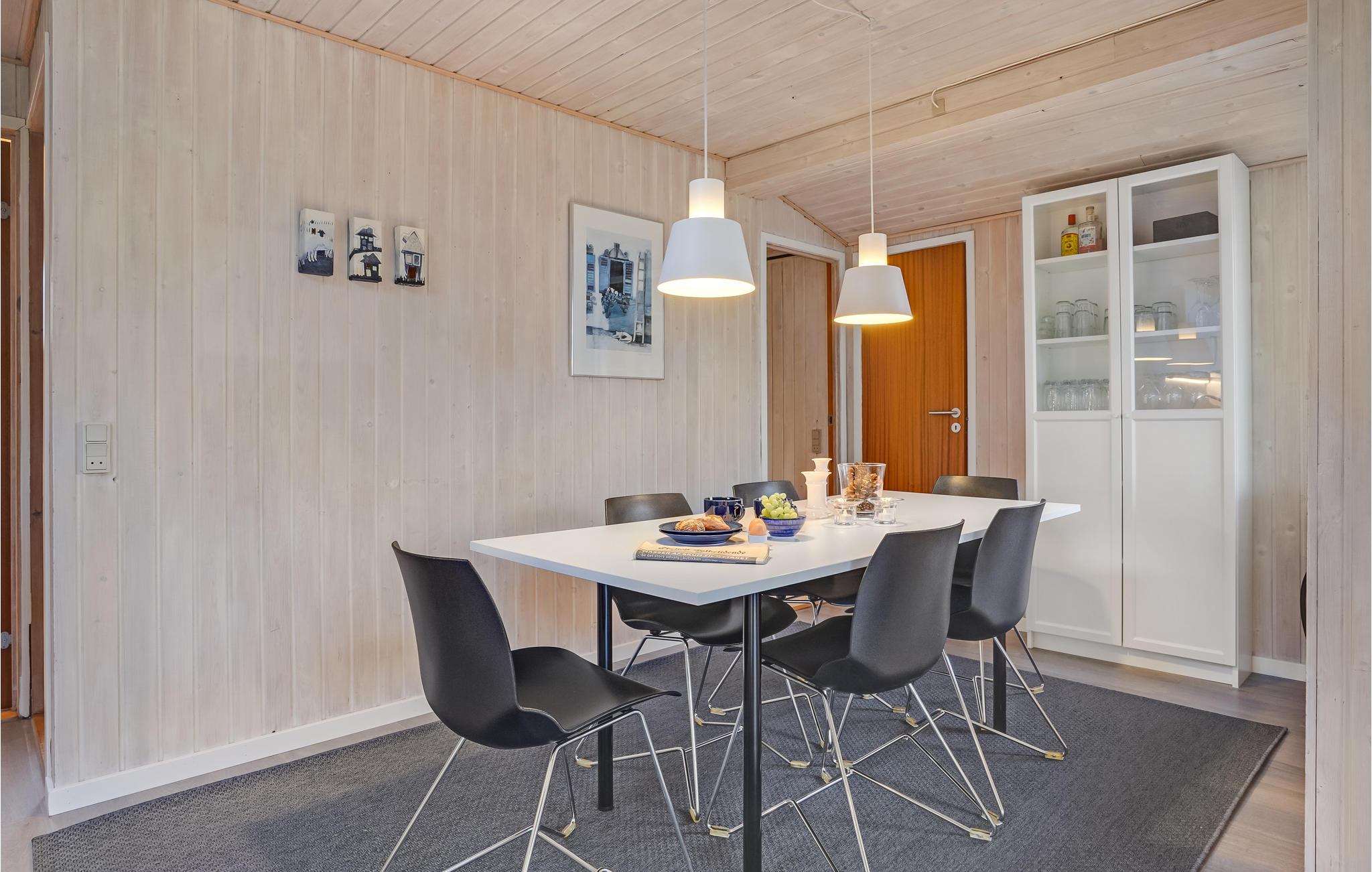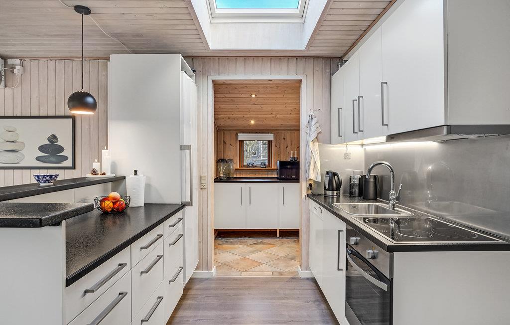 Slap af i dette skønne sommerhus. Hyg jer med jeres nærmeste og nyd tiden sammen i den åbne stue, mens nogle laver lækre retter i køkkenet og andre spiller kort ved spisebordet eller slapper af i sofaen. Hvis I trænger til ekstra varme og hygge, kan I tænde op i brændeovnen og nyde varmen og de knitrende lyde fra ilden. Saunaen bidrager også til afslapning.