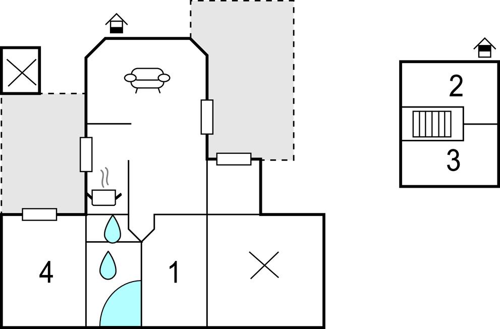Soveværelse (nr. 1) - 2 Sovepladser. (Enkeltseng(e)).