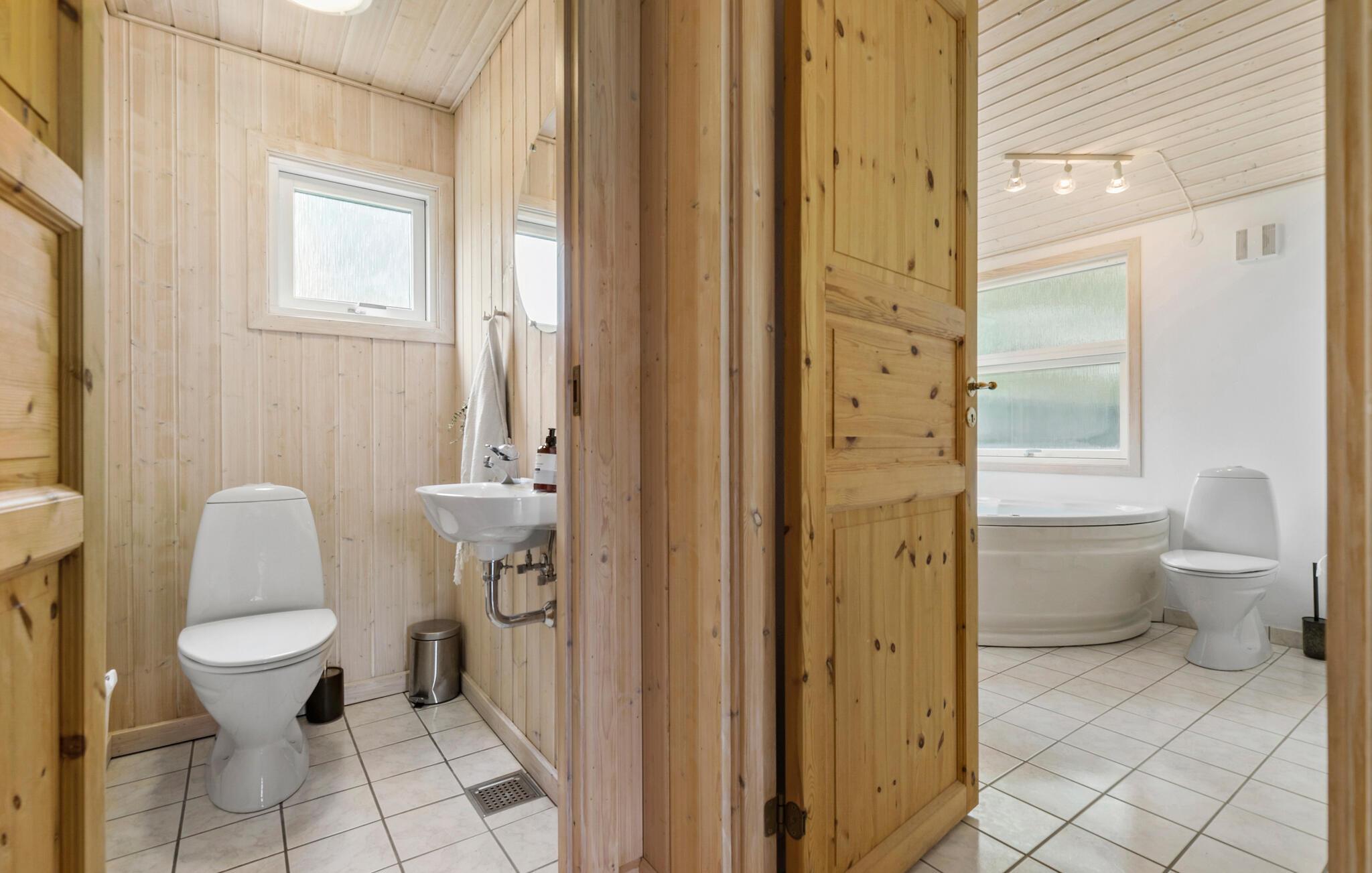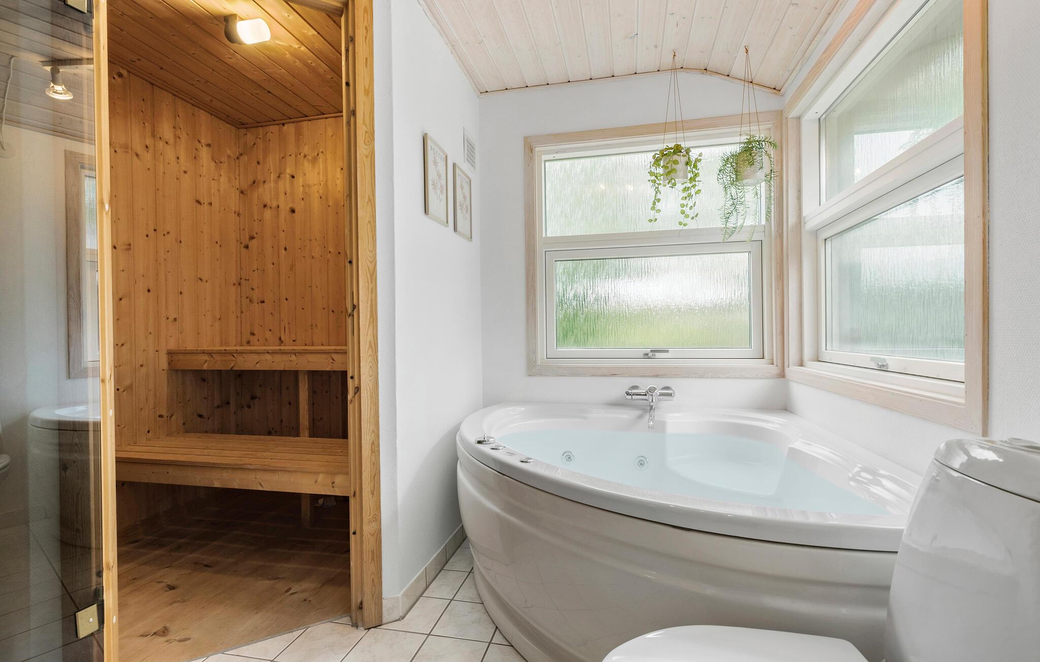 Glæd jer til familiesjov og afslapning i jeres indbydende hus. Det lyse træ, brændeovnen og de store vinduer skaber sammen med de behagelige møbler en hyggelig atmosfære. Nyd jeres feriedage i ro og mag, lav mad sammen, og oplev jeres lille wellnessområde på badeværelset, hvor et spabad og en sauna venter på jer.