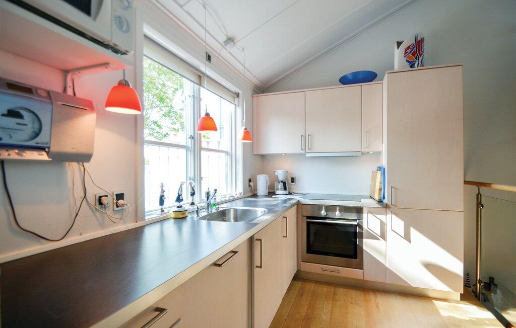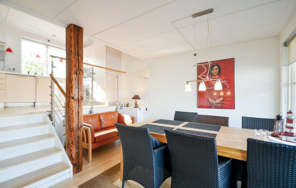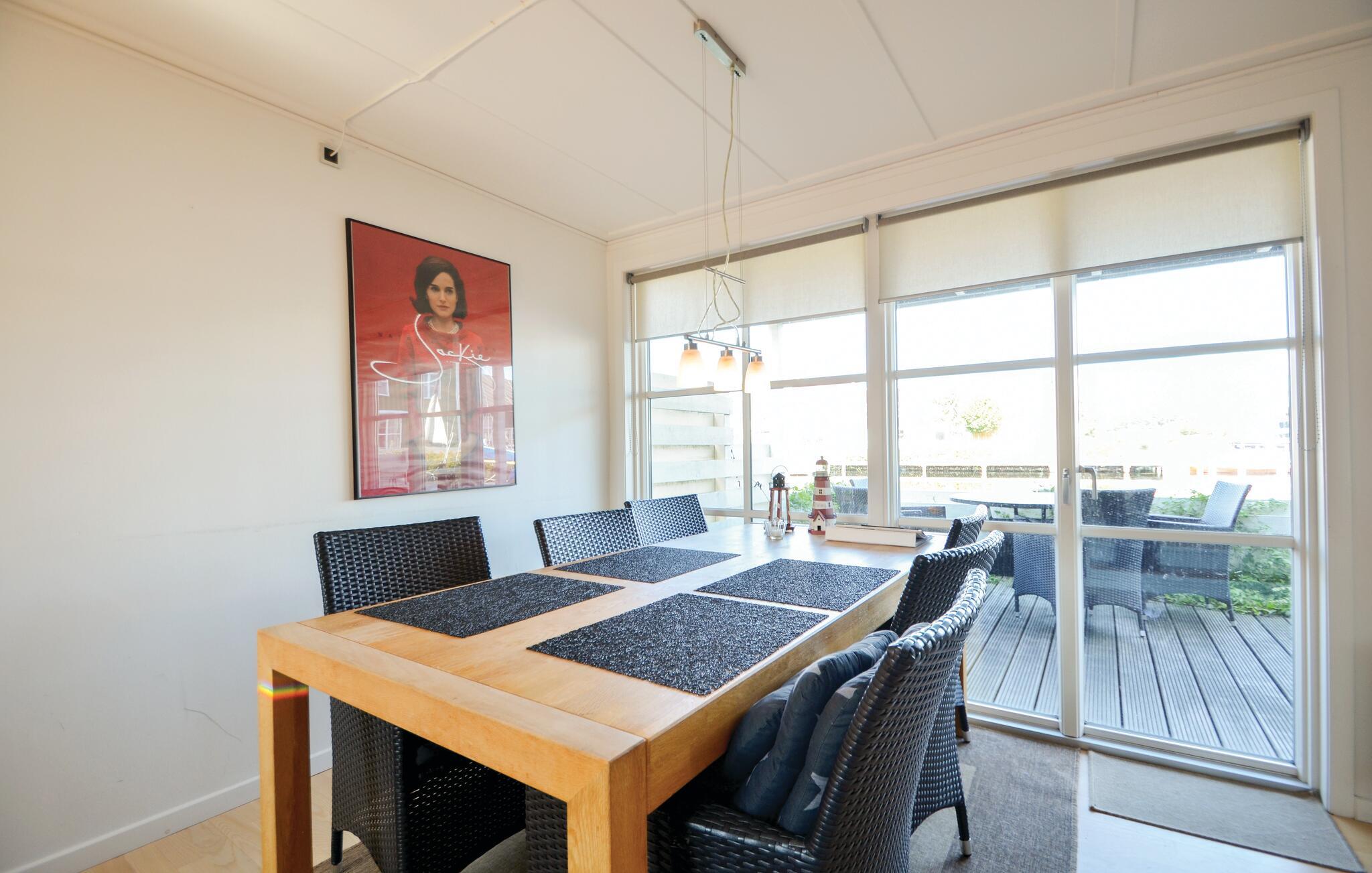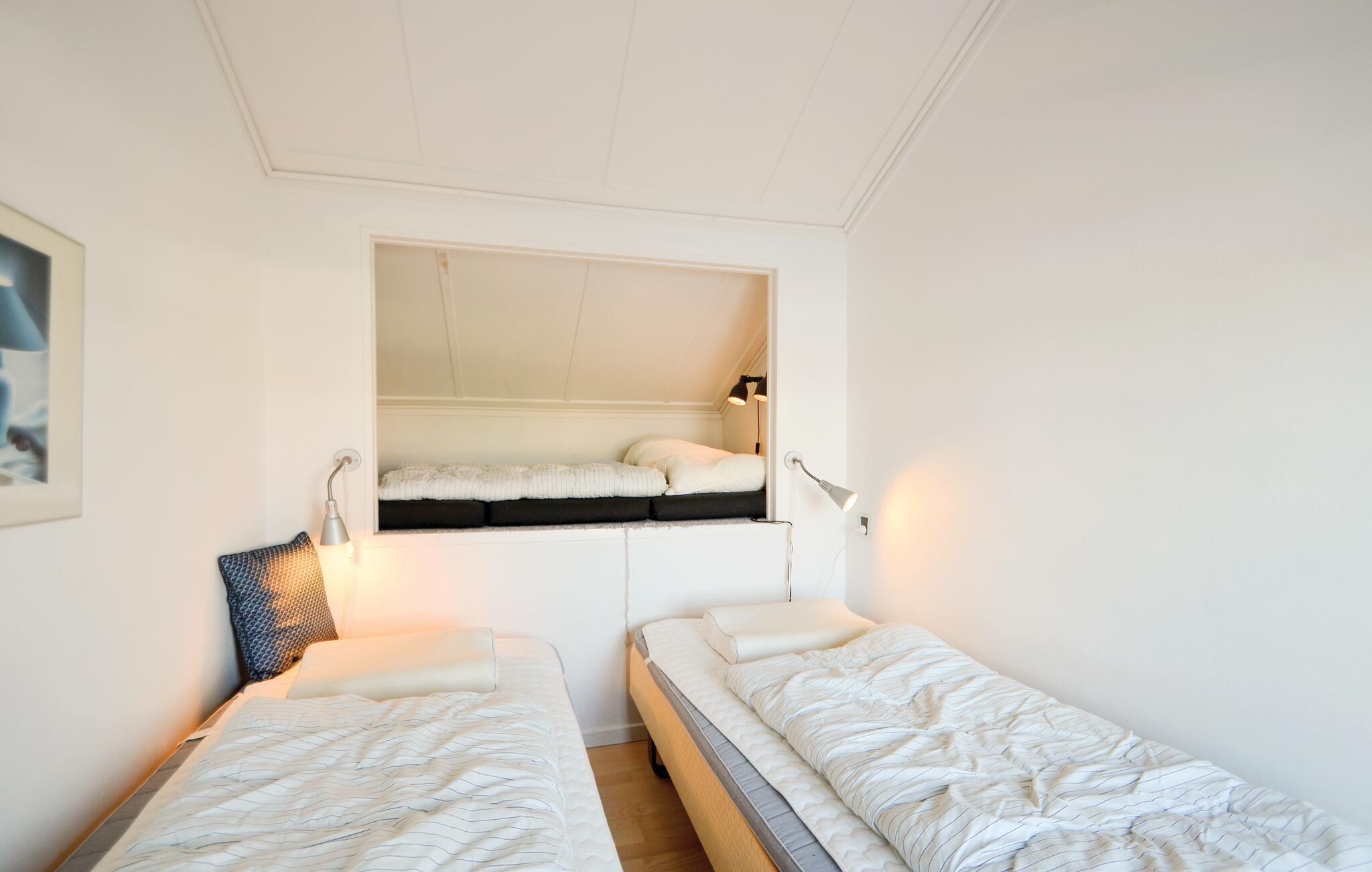 Dette feriehus strækker sig over to etager og ligger virkeligt charmerende lige ved havnen. Husets hjerte er den åbne og lyse opholds- og spisestue med moderne køkken. Efter en lang gåtur kan I få varmen i den fælles sauna eller i den indendørs pool, som kan benyttes mod gebyr. På de varme dage kan I sidde på terrassen med en kop kaffe og en god bog.