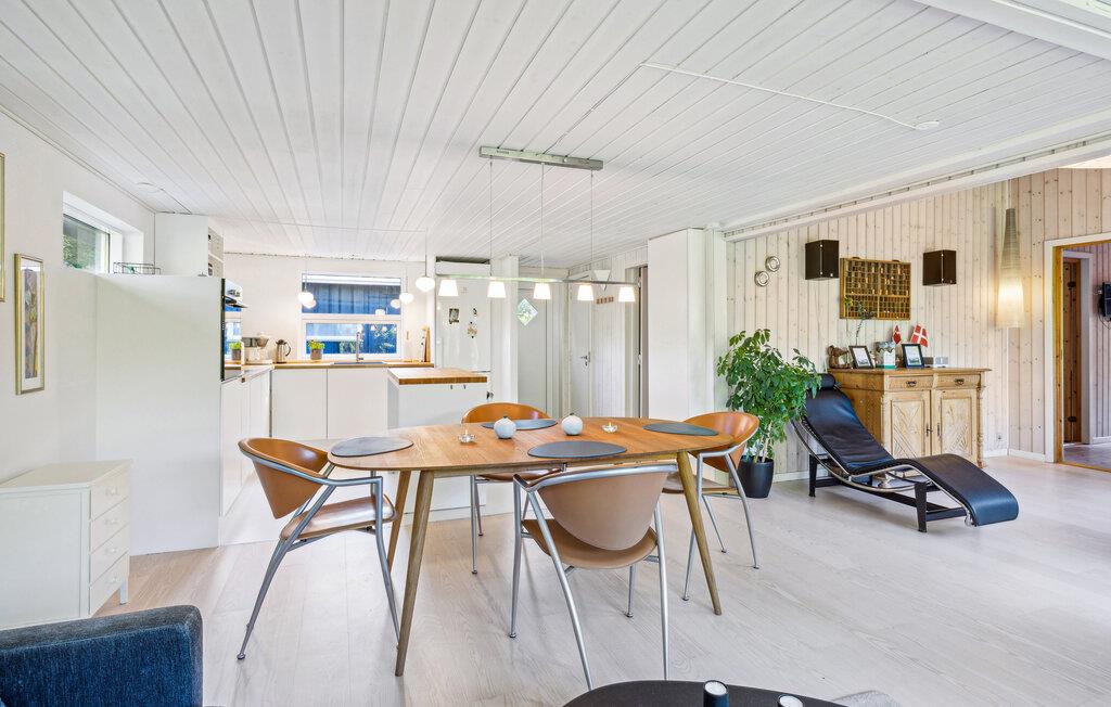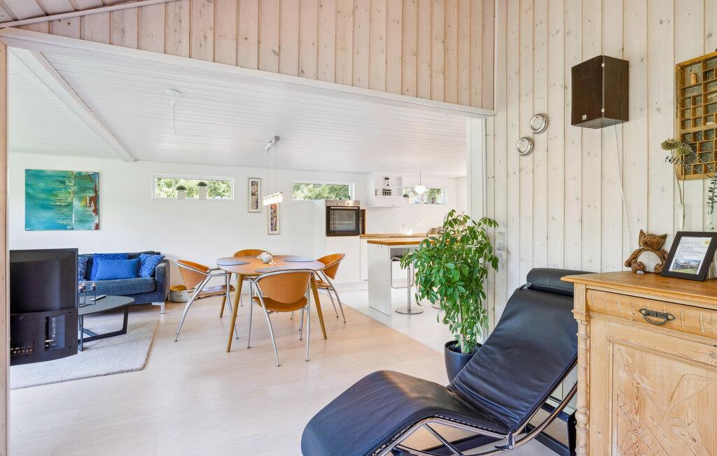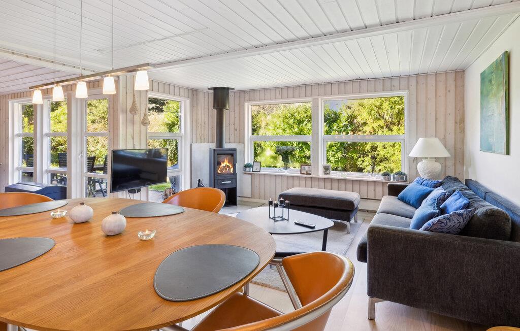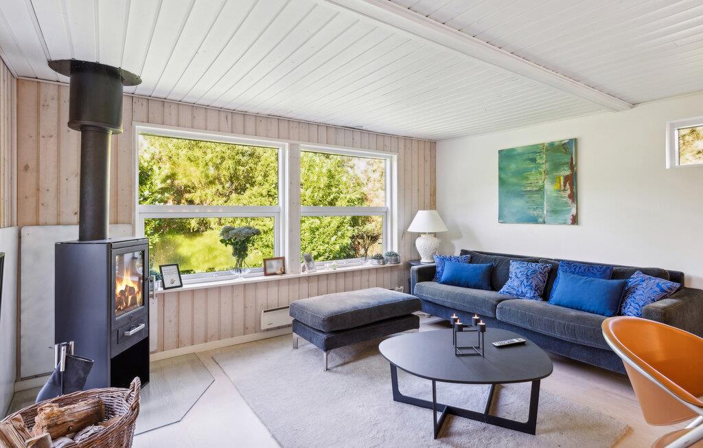 Dette skønne feriehus nær Øer Strand er det perfekte sted til en afslappende familieferie. De klassisk indrettede, lyse værelser gør det nemt at føle sig godt tilpas. Opholdsstuen med brændeovn sørger for hygge, mens det veludstyrede køkken lægger op til hyggelige madlavningsseancer. I saunaen kan alle få varmen oven på en frisk gå- eller svømmetur.