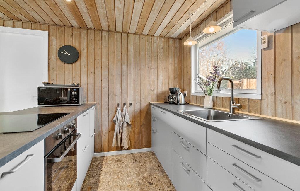 Velkommen til dette rummelige feriehus med stemningsfulde trægulve, vægge- og lofter, der i kombination med åbent til kip og den stilfulde indretning gør et herligt indtryk. Her kan I virkelig gå ned i gear og tilbringe nogle skønne, afslappede dage. Den store, åbne opholdsstue med store vinduespartier er husets hjerte og bliver samlingspunktet for mange gode stunder og hyggelige filmaftener. Takket være sauna, brændeovn og helårsisolation, er huset også yderst velegnet til ferier uden for sommersæsonen.