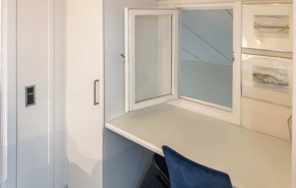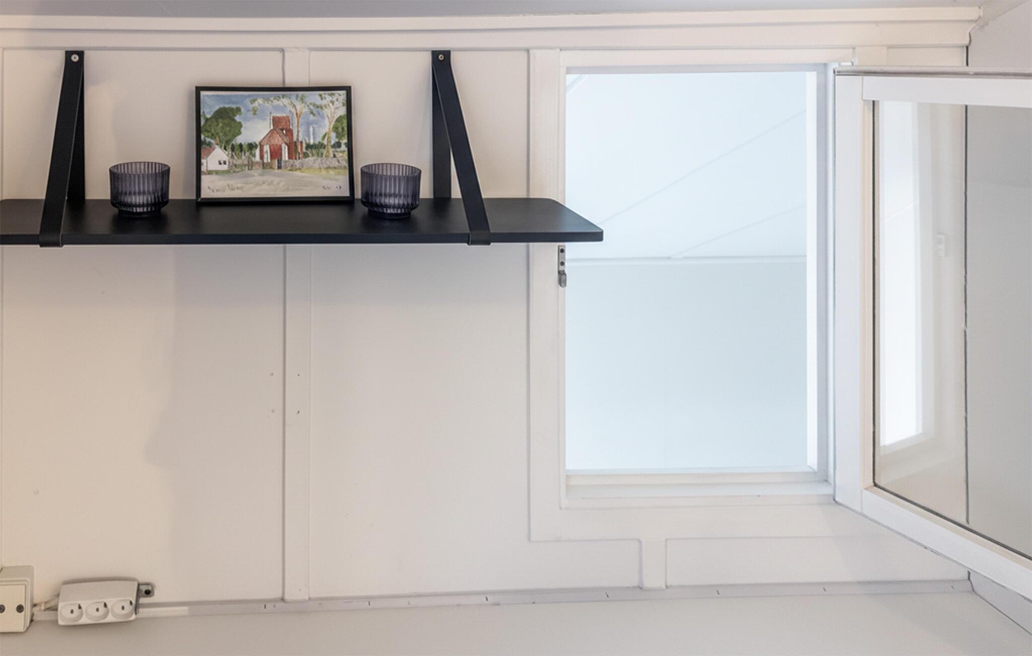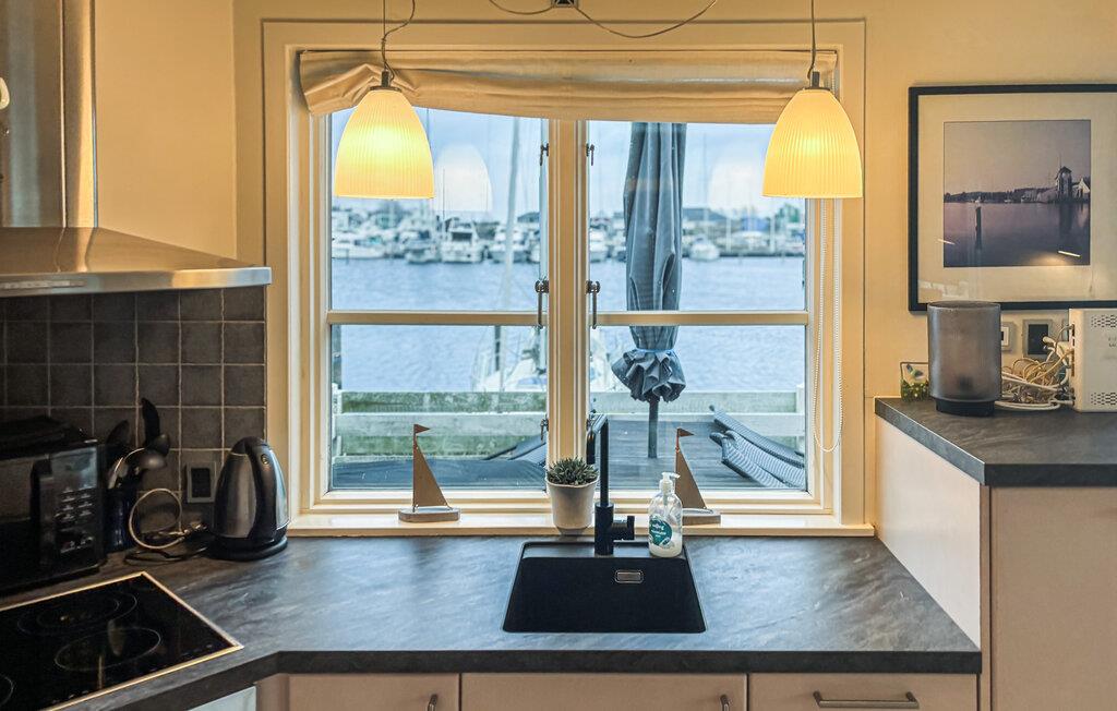 Huset er indrettet med kvalitetsmøbler og med sans for farver og sammensætning. Fra huset er der direkte udgang til en dejlig terrasse, som er beliggende lige ved vandet. Her kan man nyde solen og udsigten det meste af dagen.