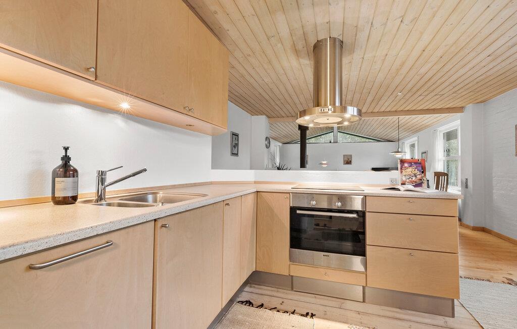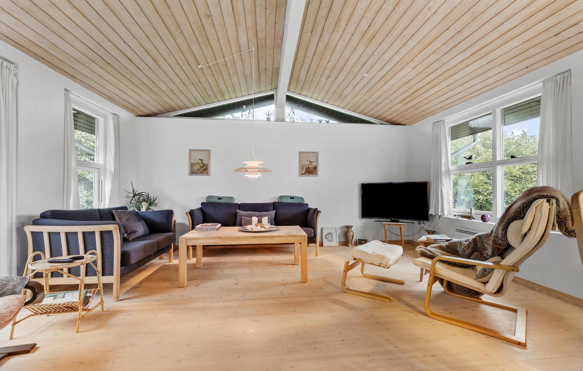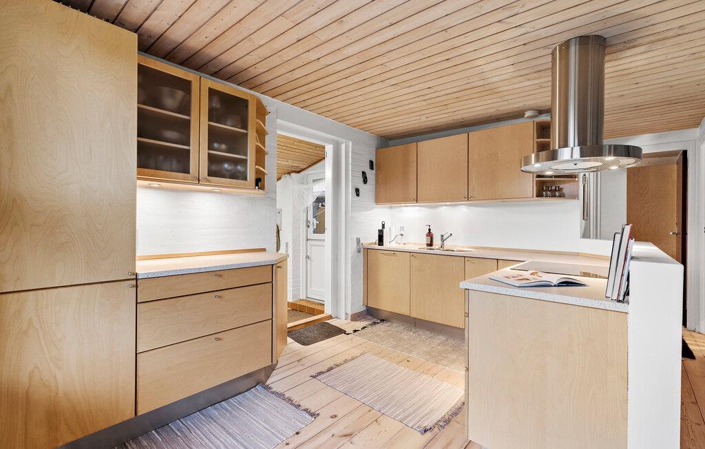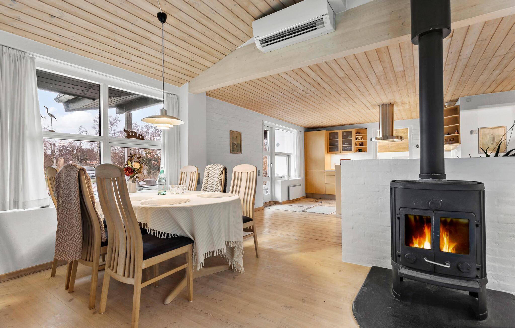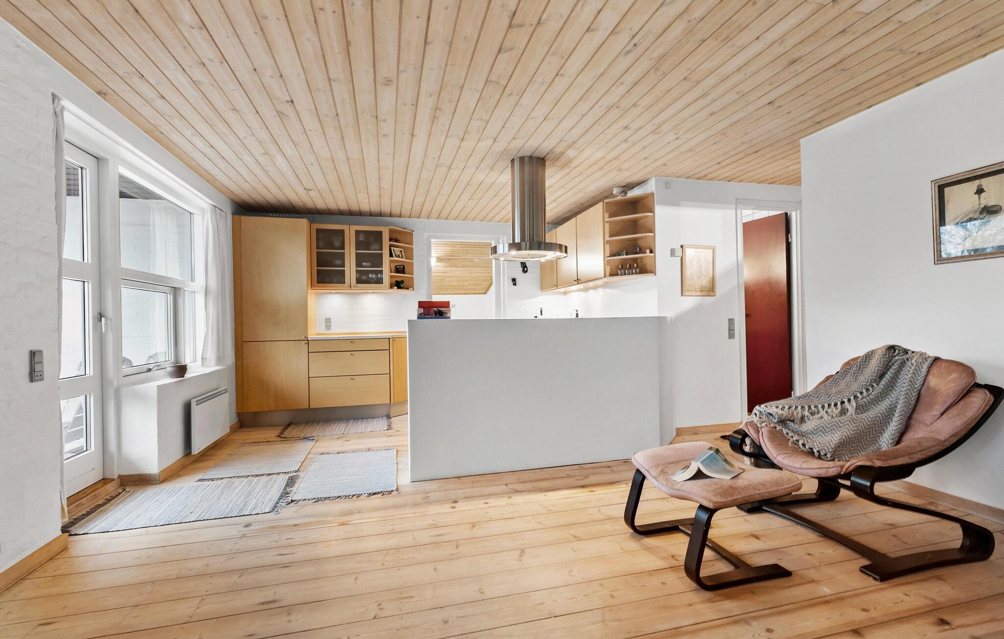 Fordyb jer i den hyggelige atmosfære i dette smagfuldt indrettede feriehus. Tilbered jeres livretter sammen i det åbne, veludstyrede køkken. Tænd pejsen og tilbring hyggelige spilleaftener ved det store spisebord eller gør jer godt tilpas med en god bog eller en spændende film i den indbydende stue.