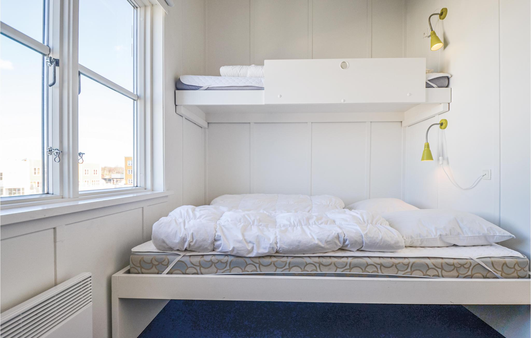 Soveværelse (nr. 1) - 2 Sovepladser. (Dobbeltseng(e)). 1 Soveplads. (Etageseng(e)).