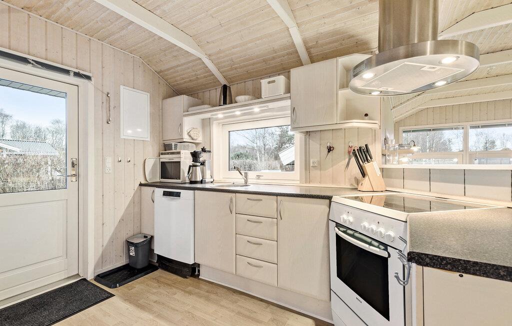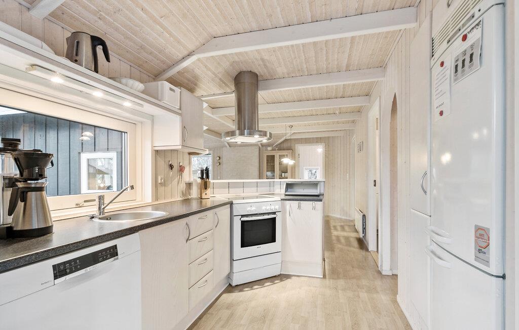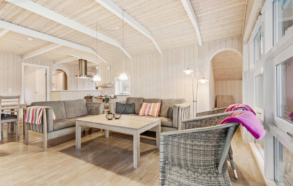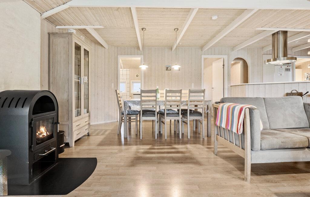 Velkommen til det lyse, indbydende interiør i jeres sommerhus, hvor en hyggelig ferie med familien venter jer. Glæd jer til at lave madaftener sammen i det moderne køkken, slap af i stuen foran den knitrende pejs eller nyd beroligende timer i hotellets sauna.