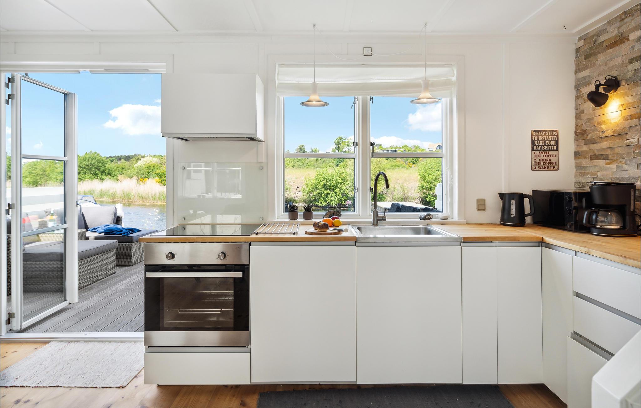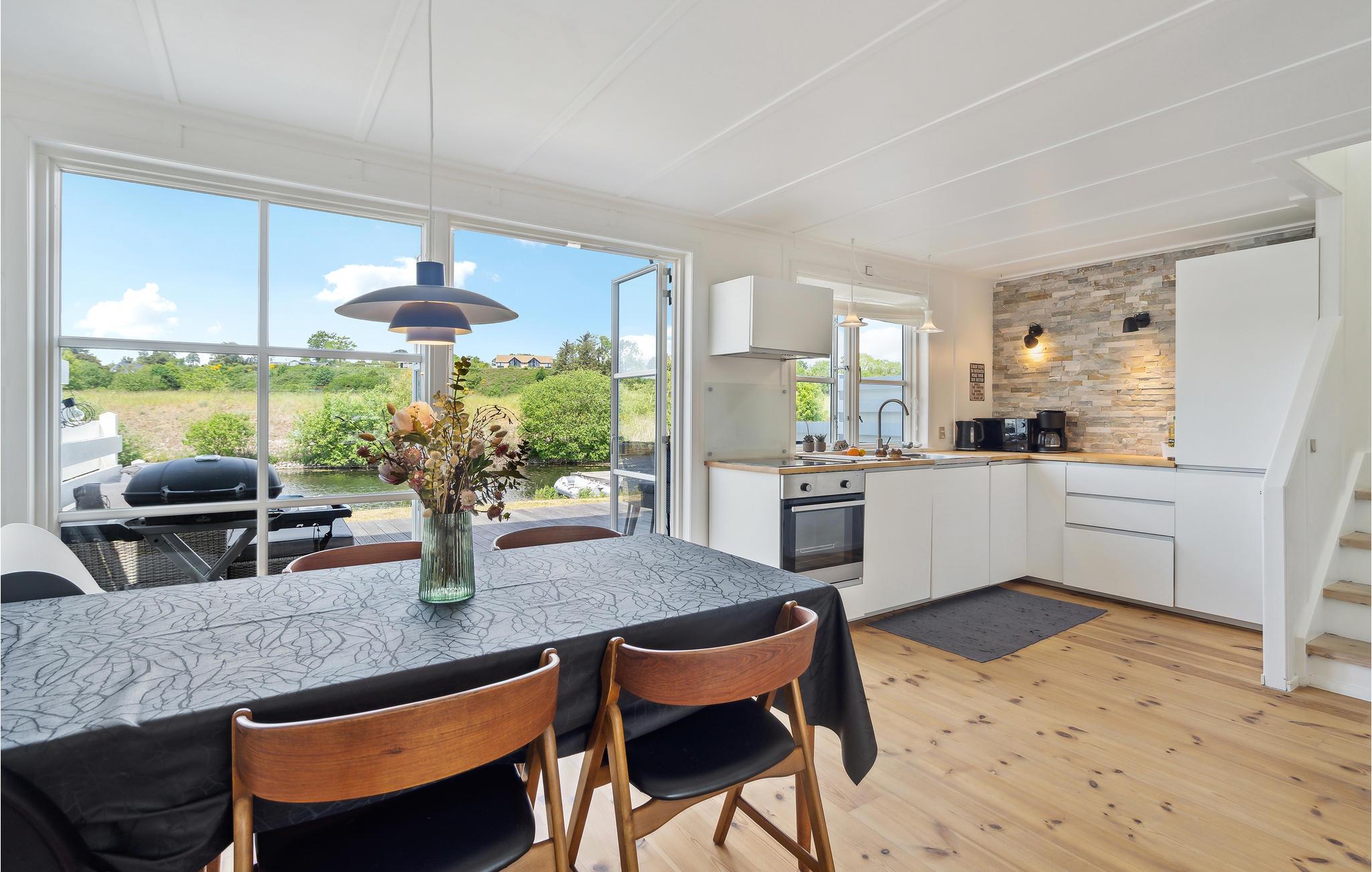 Kom til dette fantastiske feriehus med hele jeres familie eller venner og nyd en velkommen pause. Huset imponerer med sin indbydende, hjemlige indretning, det rummelige spisekøkken og frem for alt den store terrasse lige ved vandet. Stueetagen indbyder til at slappe af, lege og lave mad sammen. Spis en lækker morgenmad med udsigt over landskabet og planlæg jeres dag eller sæt jer sammen om aftenen for at lade dagen ende på smukkeste vis.