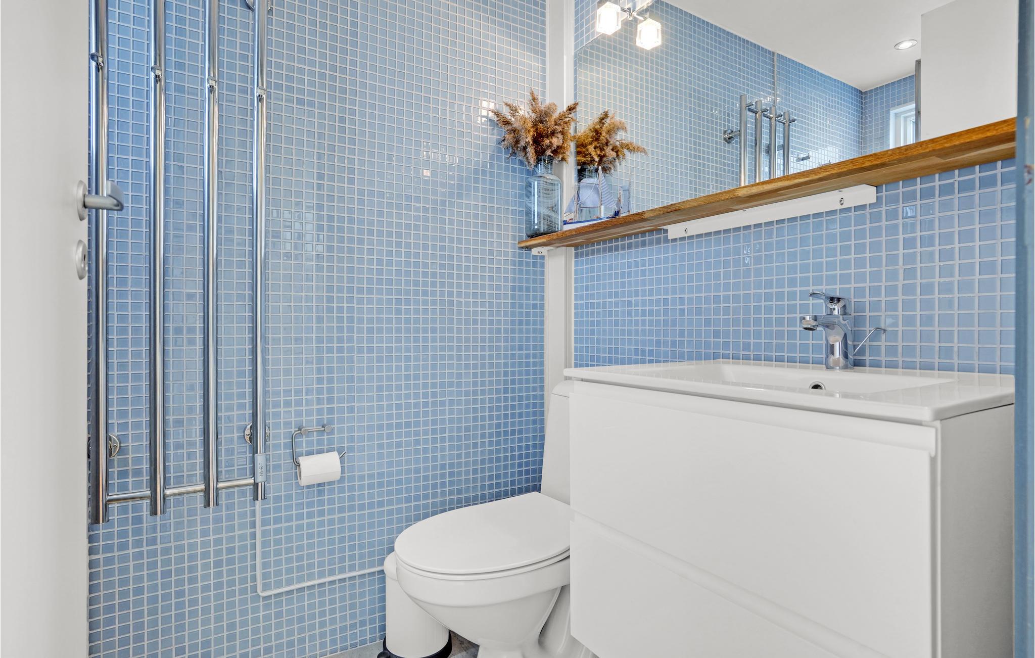 Sommerhuset er komfortabelt indrettet og skaber ideelle rammer for et ophold, I vil huske med glæde i lang tid. Den fælles sauna inviterer jer til at slappe af efter en aktiv dag. Der er behagelig gulvvarme på badeværelset.