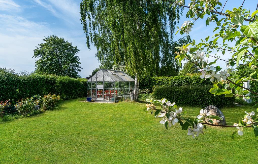 Glæd jer til dette hus med en skøn have, som vil danne en dejlig ramme om en afslappende ferie for jeres lille familie. Dæk morgenbordet med kaffe, juice, lækkert brød og frugt i den hyggelige stue med udsigt til haven og fjorden. Her kan I også udfordre hinanden i matador. Husk de søde sager! Nyd frokosten og aftensmaden på den overdækkede terrasse. Her kan I også indtage morgenmaden. Mens I nyder solen, kan jeres børn slå sig løs i haven og slukke tørsten under parasollen.