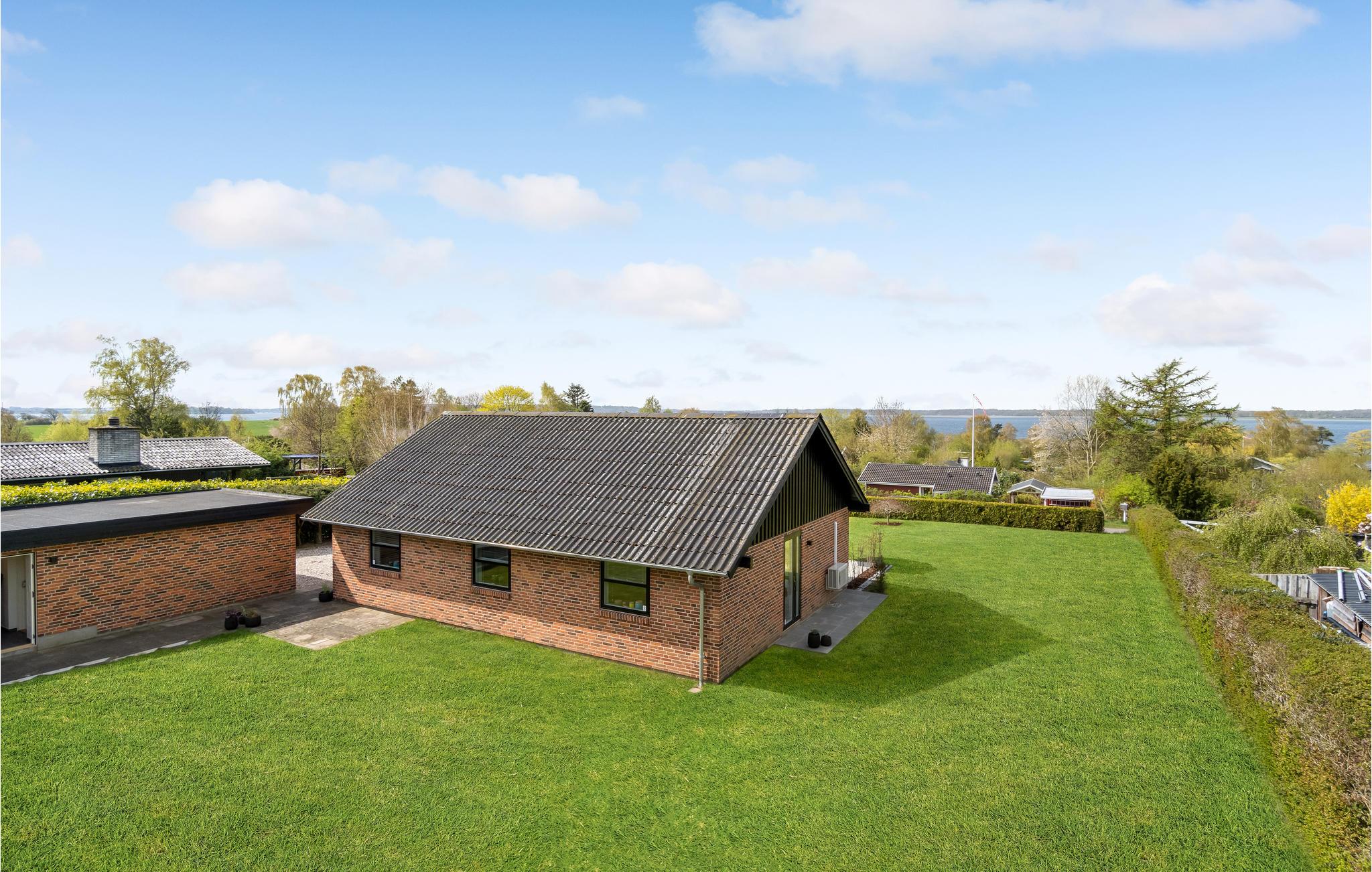 Indbydende murstenshus ved Ølsted Strand med fjordudsigt, sauna og moderne faciliteter for en afslappende ferie.