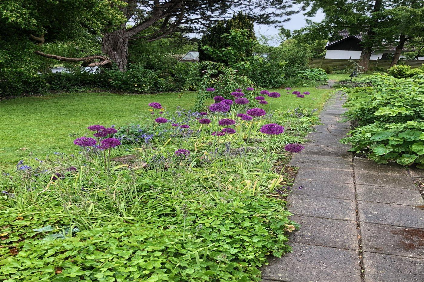 Udenfor er der en stor have med græsplæne, hvor man kan lege, spille bold eller bare nyde solen.