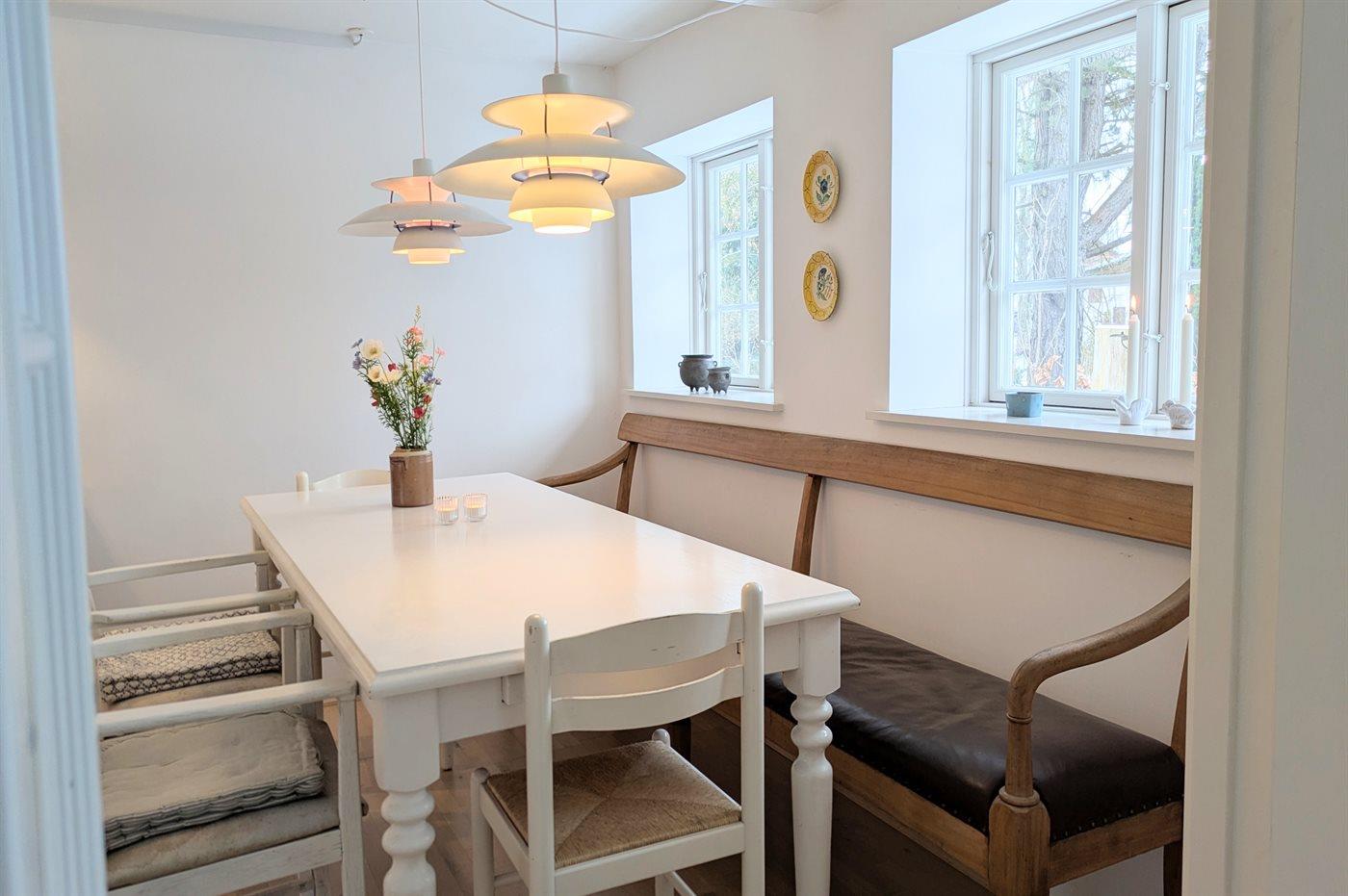I stueetagen finder du en rummelig entré, et badeværelse med bruseniche, et stort køkken med spiseplads, en hyggelig stue med synlige bjælker og brændeovn samt et soveværelse. På første sal er der tre gode værelser og en repos med læsehjørne, tv og spillekonsol. Der er en stor have med god plads til boldspil og leg. På terrassen er der både grill og havemøbler til rådighed. Der findes udendørs bruser. Desuden Hvis man vil til vandet kan man enten tage til Ørby Strand eller Haderslev Fjord.