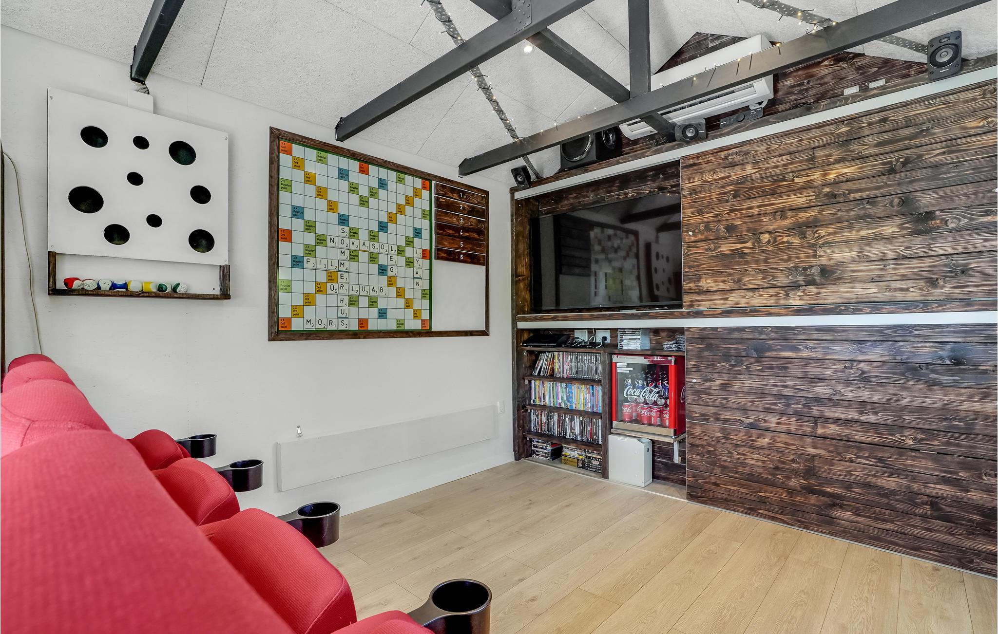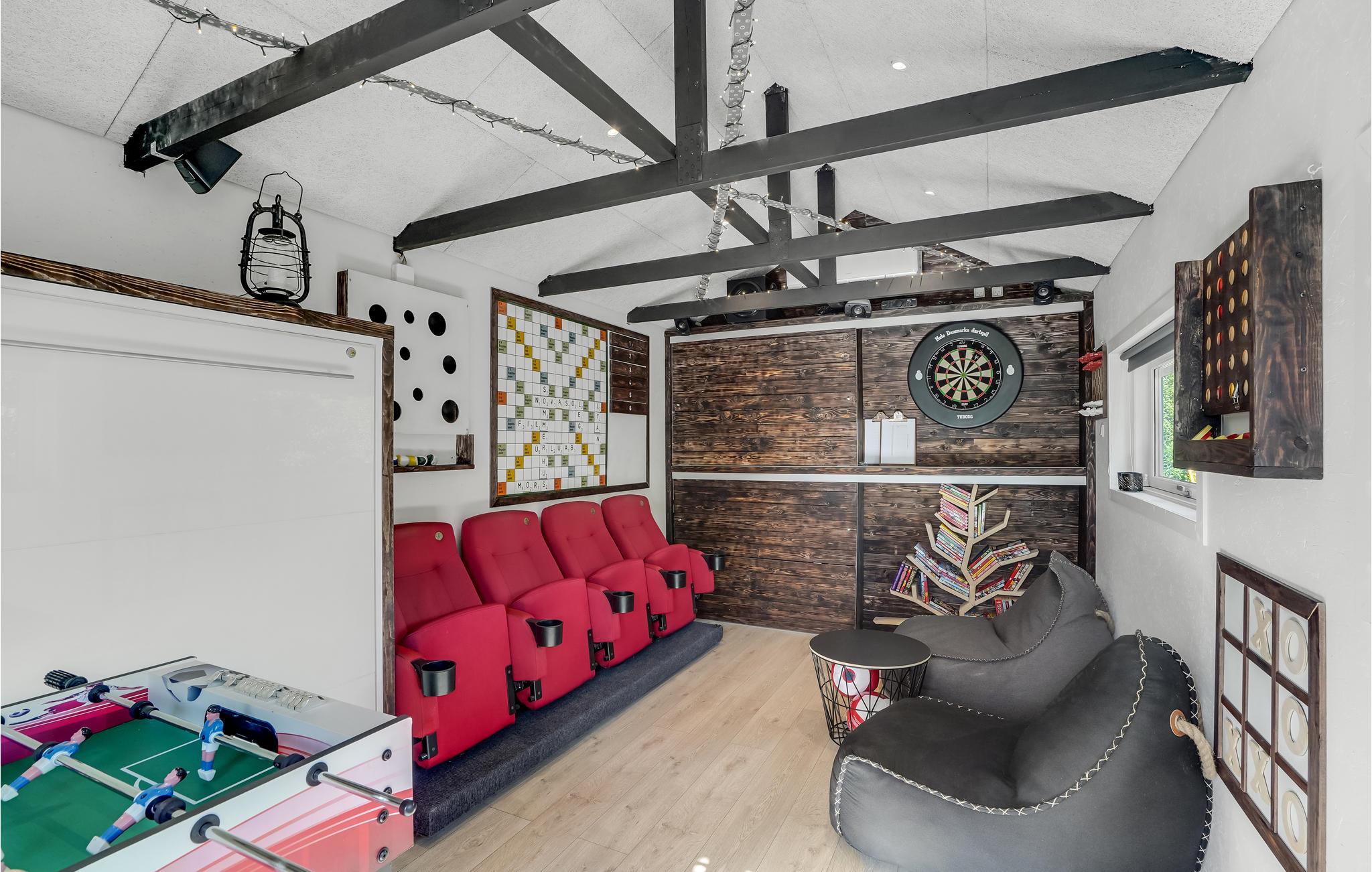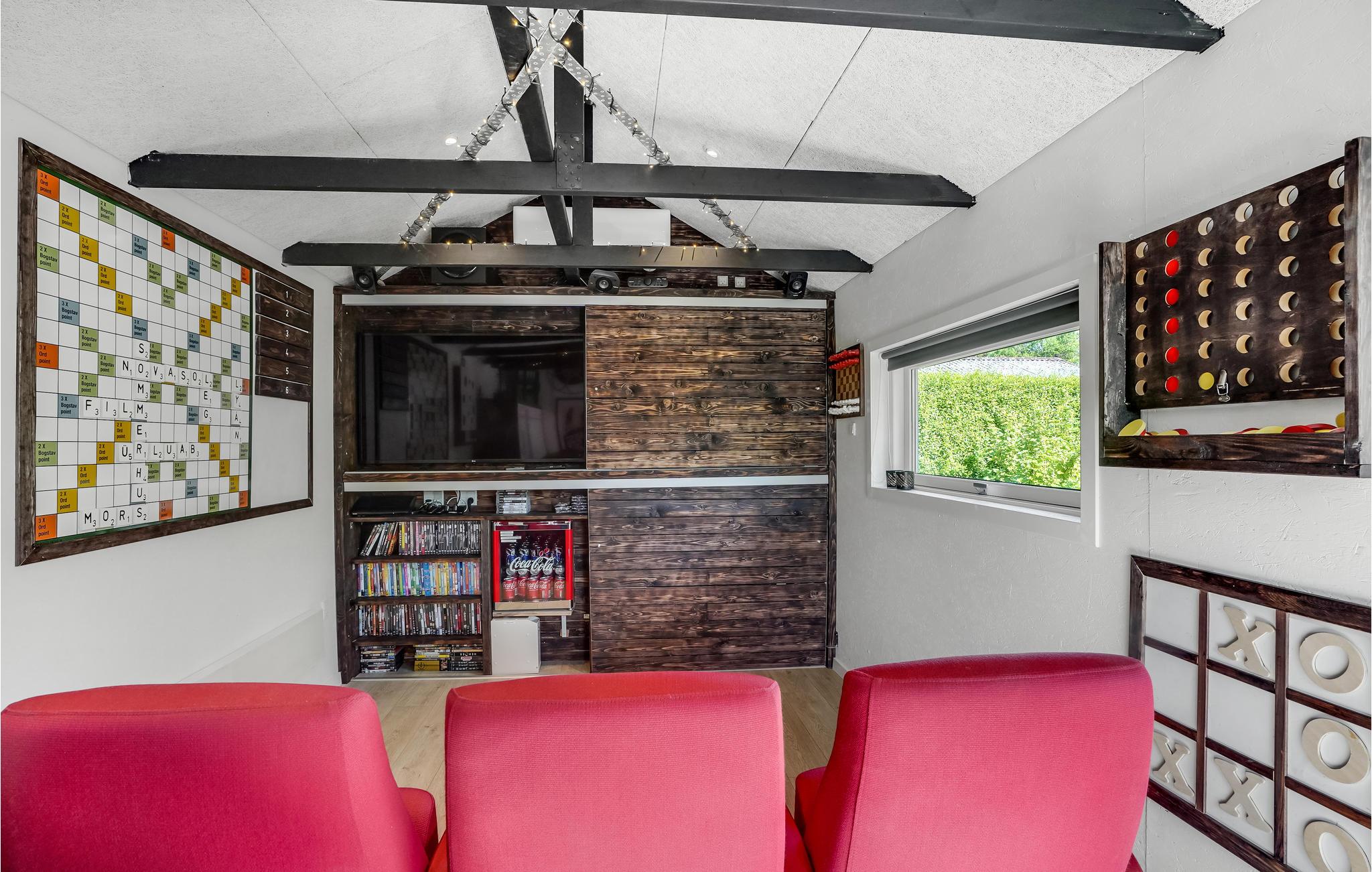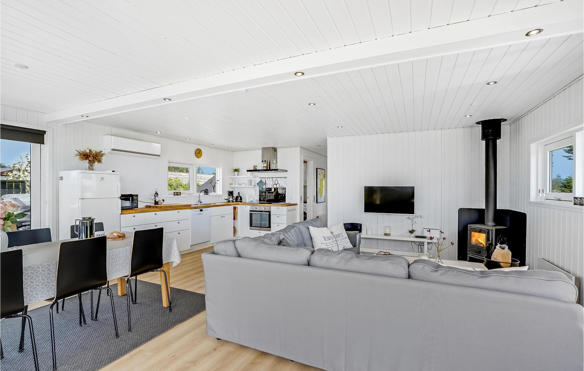 I dette attraktive og renoverede sommerhus er alt klar til en afslappende ferie med hele familien. Huset har 3 soveværelser til op til 6 personer. Værelserne er lyse og moderne, meget lys kommer ind i huset gennem store vinduer. Fra spisepladsen har I en vidunderlig udsigt, og pejsen sørger for ekstra hyggelig stemning. I annekset kan I udfordre hinanden til forskellige spil eller synke ned i biografsæderne og se en god film.