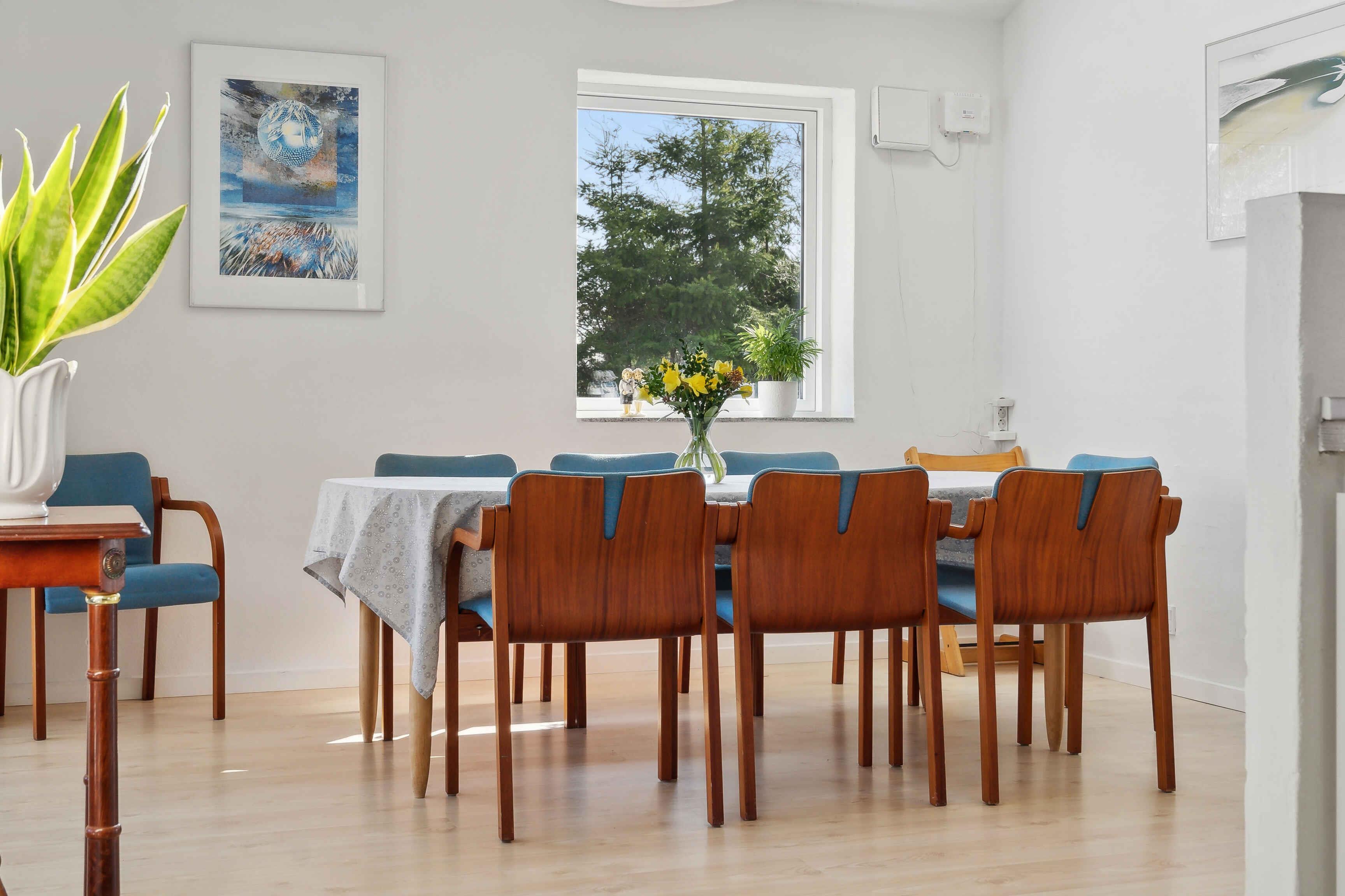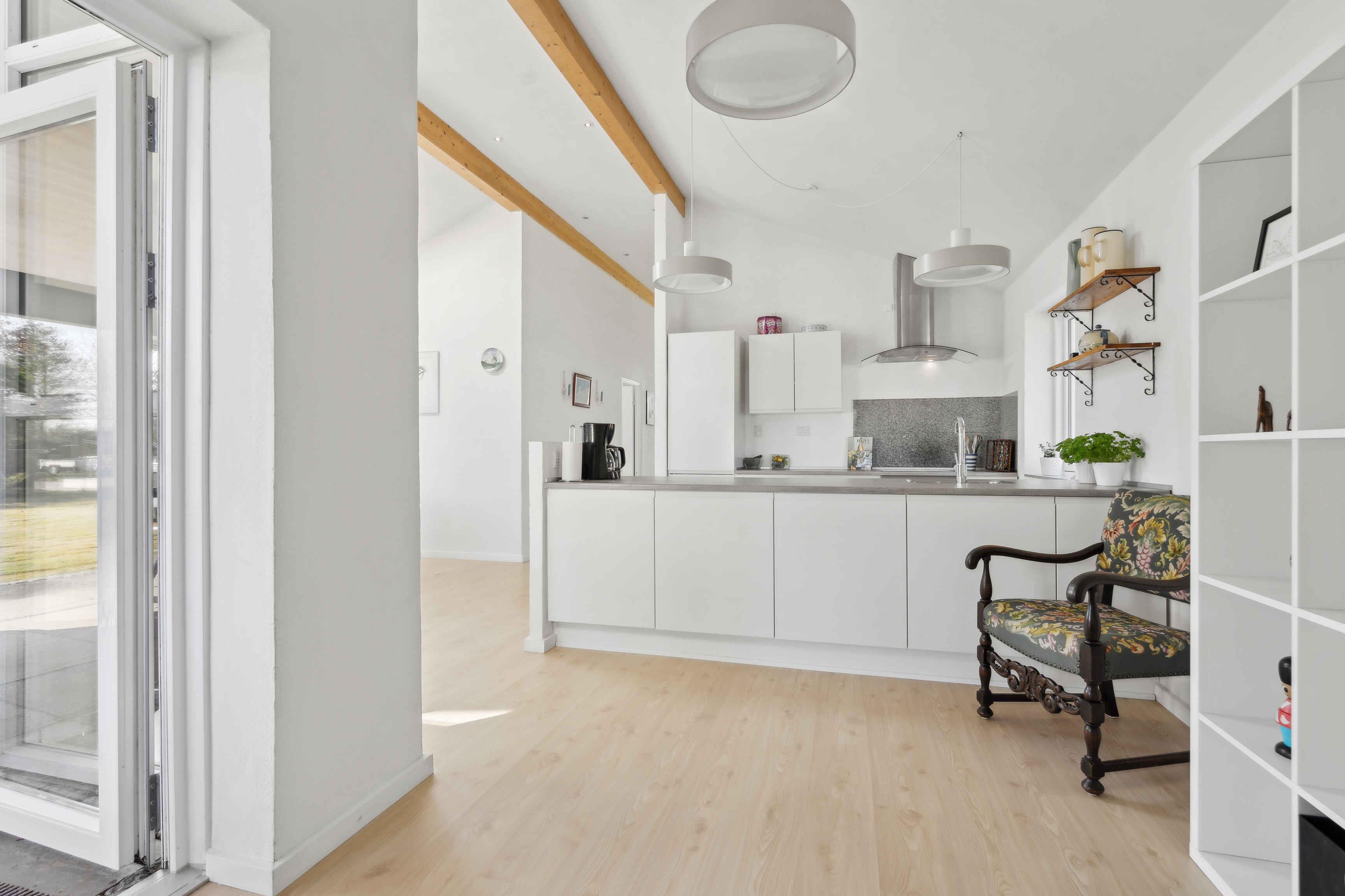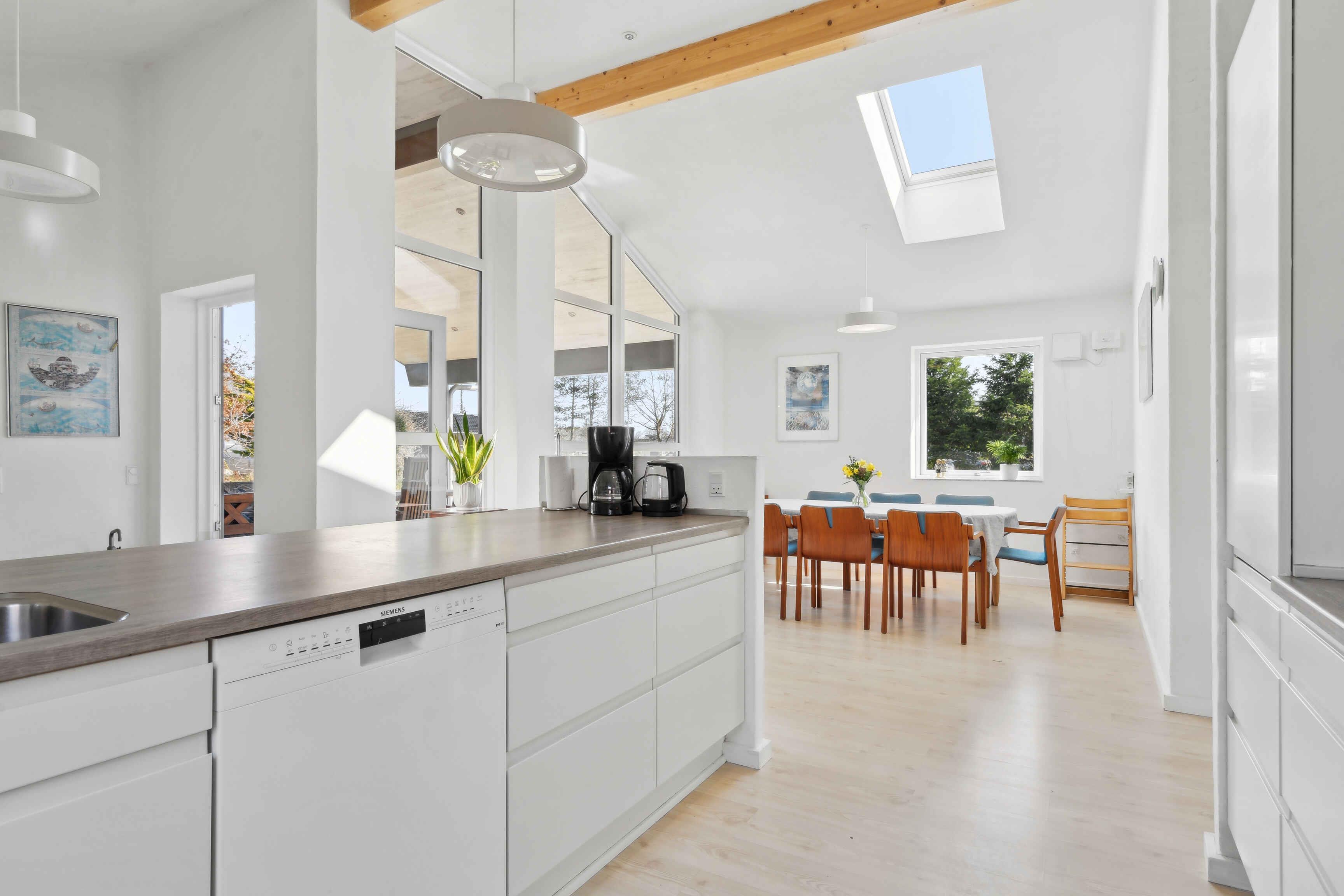Dette store og lyse sommerhus fra 2016 er beliggende 350 meter fra den yderst børnevenlige Store Sjørup Strand. Huset ligger på en dejlig stor grund og er omgivet af en fliseterrasse, så I altid kan finde en plads i solen. Fra sommerhusets grund er der udsigt til havet. Sommerhuset er indrettet med et godt veludstyret køkken med en lys og rummelig spiseplads. Herfra er der udgang til en stor overdækket terrasse mod sydøst med gode havestole, bord og grill. Husets 7 sovepladser og 1 barneseng (0-4 år) fordeler sig på 3 soveværelser. Her er to badeværelser – begge med bruseniche og gulvvarme, det største med vaskemaskine og tørretumbler. Derudover indeholder sommerhuset en stue, hvor der er plads til afslapning, hygge, TV, spil mm. for alle feriegæster. I huset er der gratis internetadgang og Chromecast med mulighed for streaming af egne tv-tjenester. Fra stuen er der udgang til en overdækket terrasse mod nordvest med havemøbler, hvor eftermiddags- og aftensolen kan nydes. Store Sjørup Strand ligger ud til Kattegat med vadehav og smukke hvide sandrevler. I sommerperioden er sandrevlerne især ved lavvande meget eftertragtede til afslapning, leg, solbadning og badning . Pak en strandkurv med mad, drikke, badetøj og gå 300 m gennem vadehavet ud til en sandrevle og få en unik og skøn naturoplevelse med familien. Der kan også fiskes med stang fra sandrevlen. Kysten er desuden et godt udgangspunkt for fine cykel- og gåture i den varierede natur. Djursland har et væld af attraktioner inden for kort kørselsafstand. Fra sommerhuset er der knap 15 minutters kørsel til Randers Fjord, som er god at fiske i, 15 minutter til Fjordcentret, 15 minutter til Det grønne museum og Gl. Estrup slotsmuseum, 25 minutter til Djurs Sommerland, 25 minutter til den hyggelige fiskerihavn i Bønnerup, 30 minutter til Randers Regnskov, 35 minutter til Kattegatcentret og 35 min. til Skandinavisk dyrepark mm. Obs, udlejes ikke til erhversmæssigt brug.