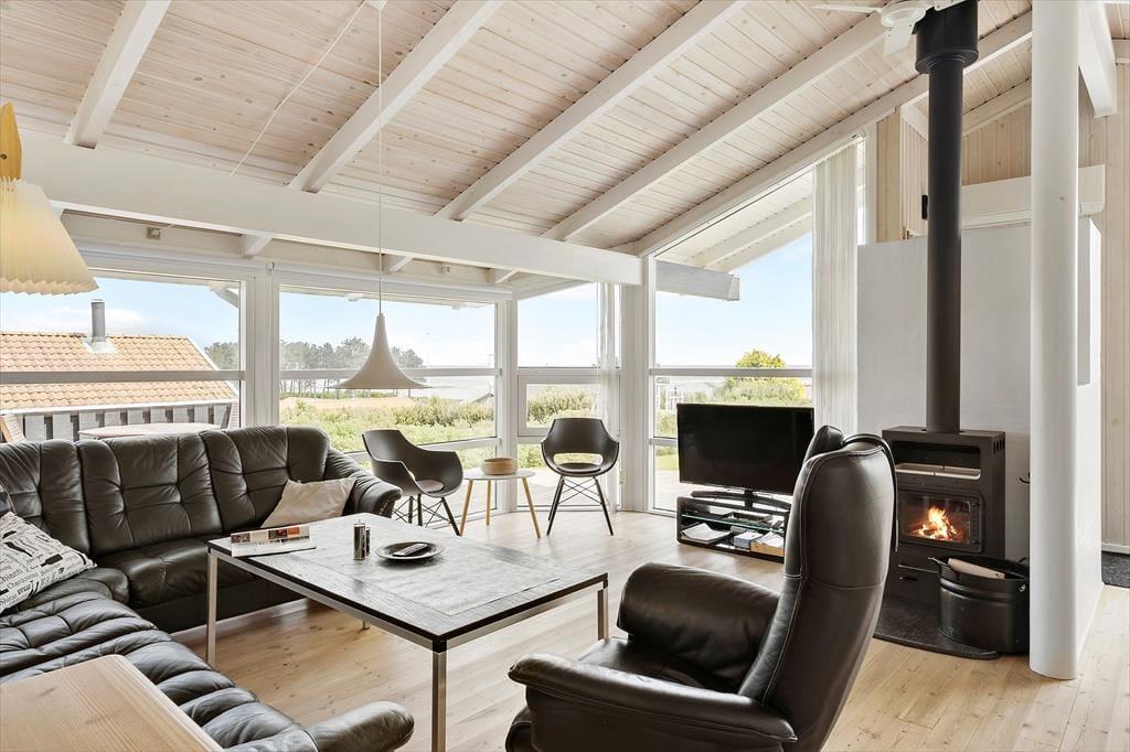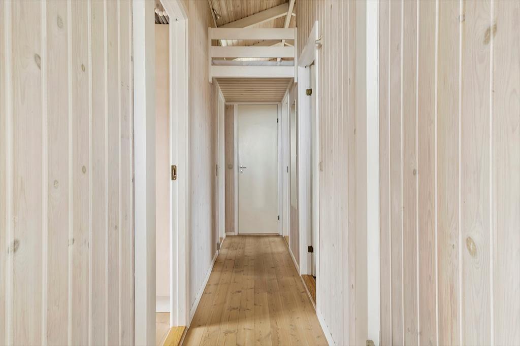 Sommerhuset fremstår pænt og velholdt med en både lys og hyggelig indretning. Kvadratmeterne er godt udnyttede, og planløsningen er gennemtænkt: På de fire soveværelser er der plads til ni overnattende gæster, og på praktisk vis er der to badeværelser at gøre godt med. Det hele handler dog ikke kun om praktik, men også komfort og forkælelse, for det ene badeværelse er udstyret med spabad og sauna. Sanserne bliver bestemt også forkælet i opholdsrummet, hvor køkken og stuen ligger i åben forbindelse. Med loft til kip og store vinduespartier er her en herlig rumfornemmelse, og midt i rummet står en brændeovn klar til at sprede varme og hygge. Gennem vinduerne kan I skue ud over Kattegat og det grønne sommerhusområde – sikke et smukt bagtæppe for ferielivet inden døre!